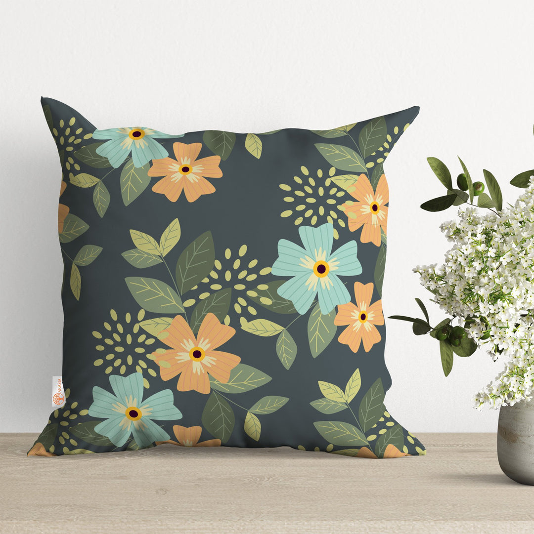 These elegant square decorative farmhouse summer trend throw pillow covers with abstract floral design;