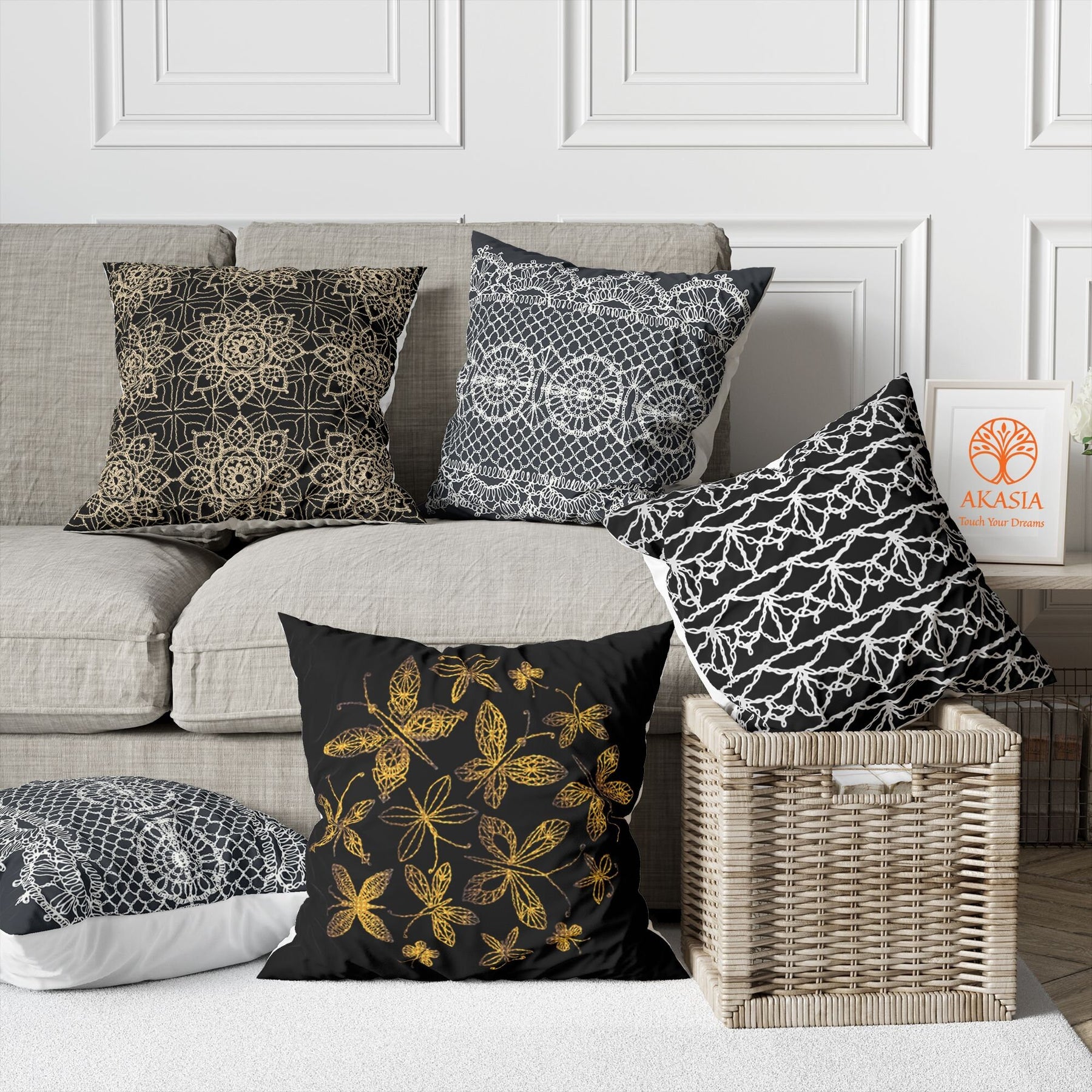 These elegant square decorative throw pillow covers with geometric lace/abstract pattern design;