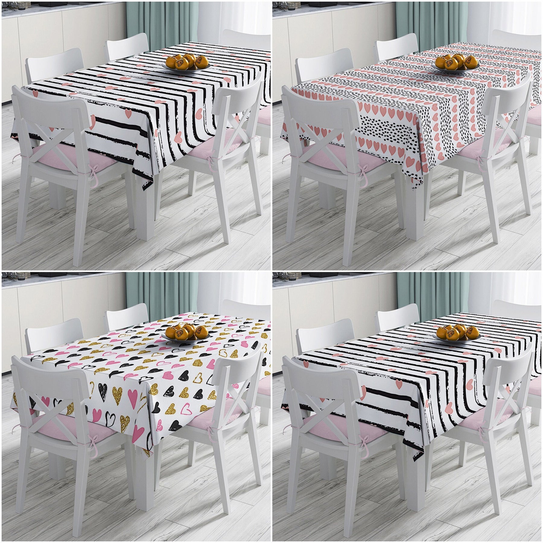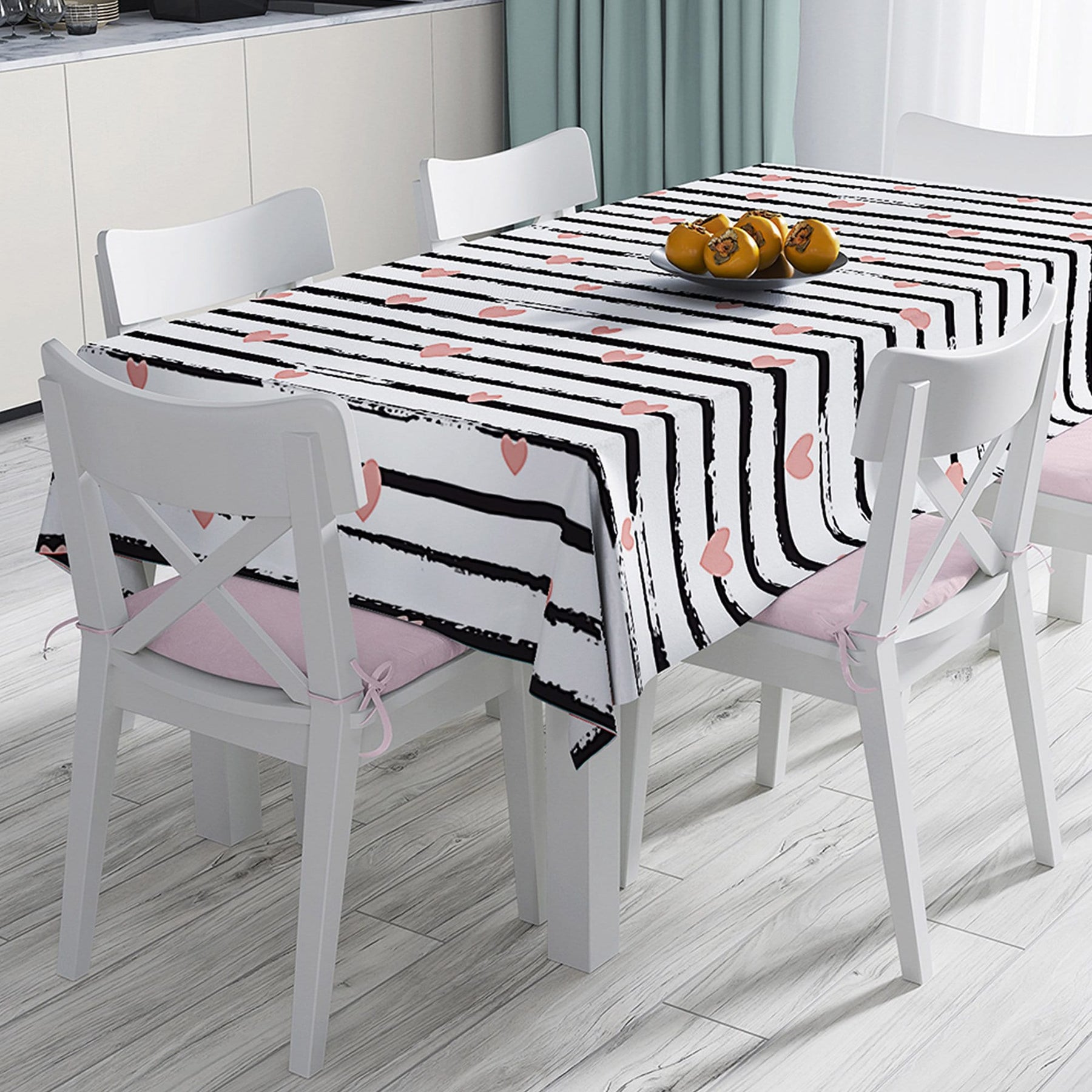 Romantic Tablecloth|Heart Table Decor|Love Themed Tabletop|Love Home Decor|Striped Tabletop|Valentine Heart Print Kitchen Table Top