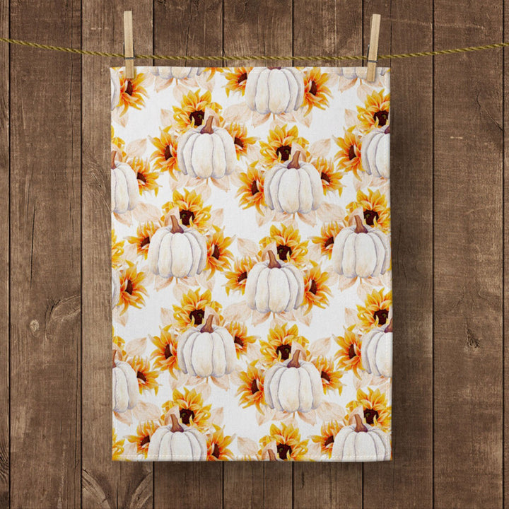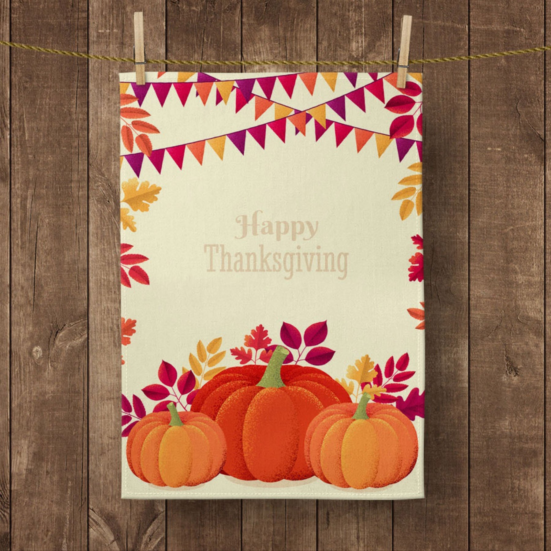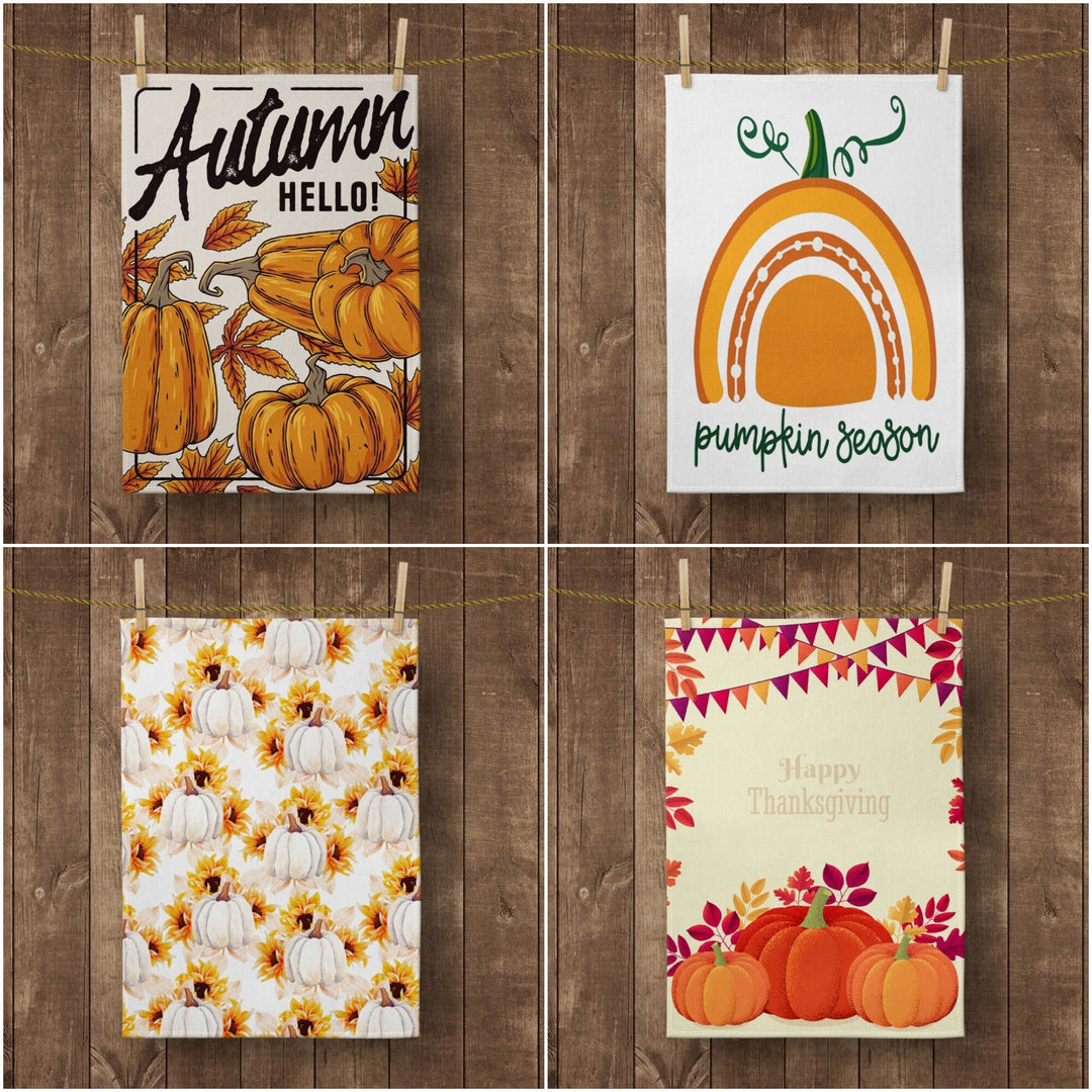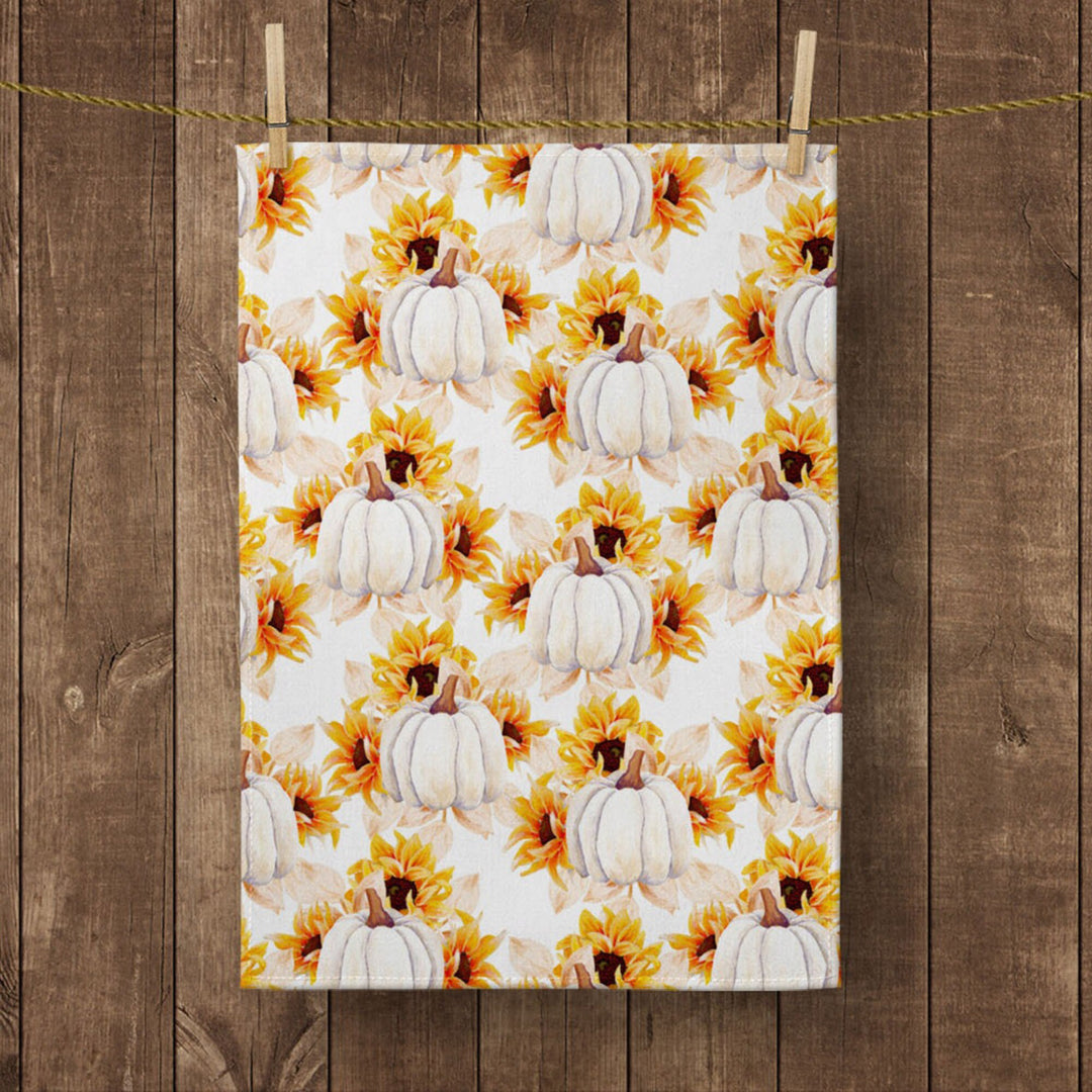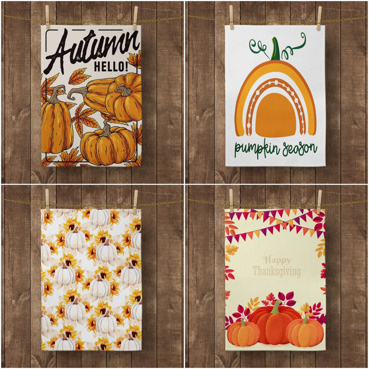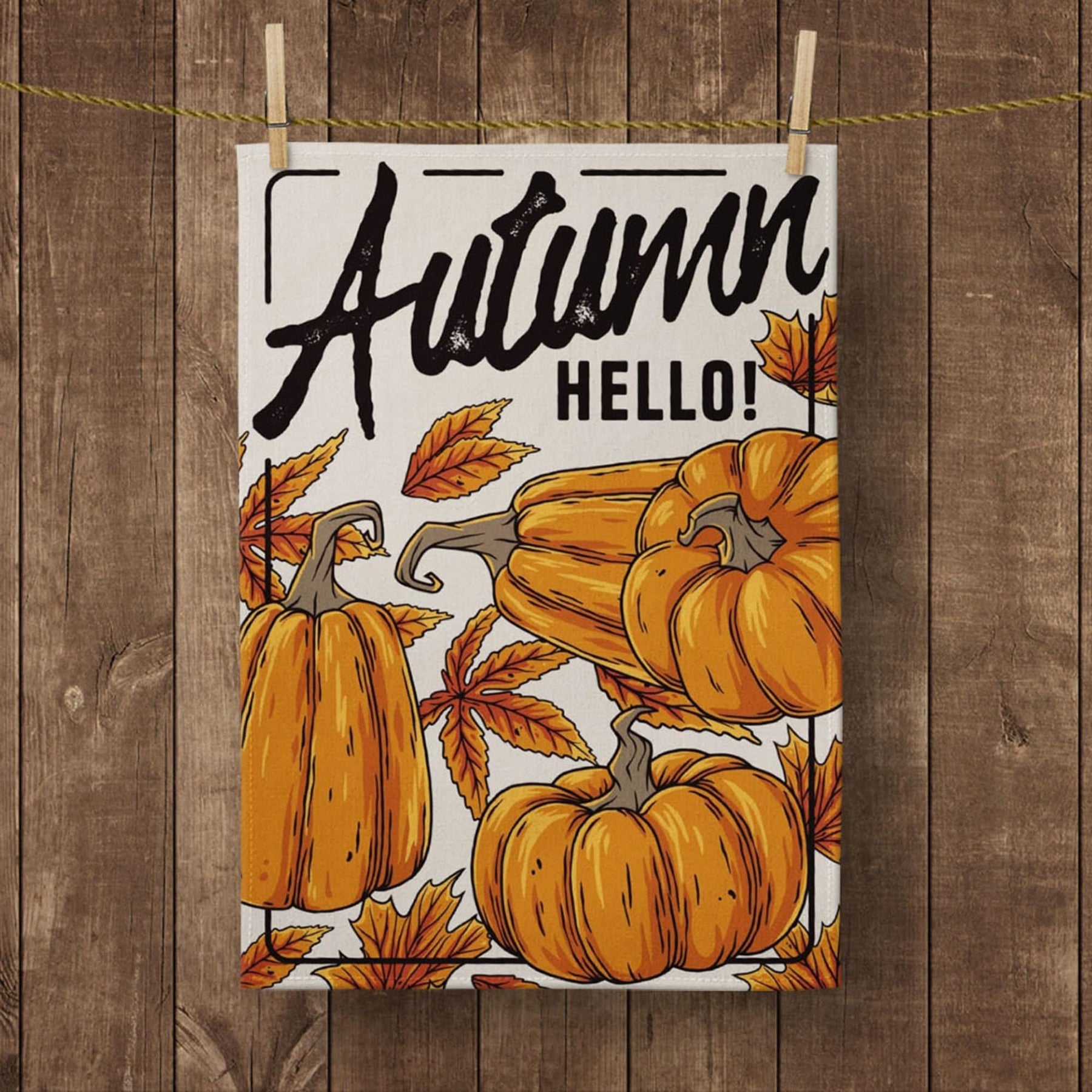 These elegant decorative rectangle kitchen/dish/hand/tea towels with floral pumpkin, sunflower, Pumpkin Season, Happy Thanksgiving and Autumn Hello prints;