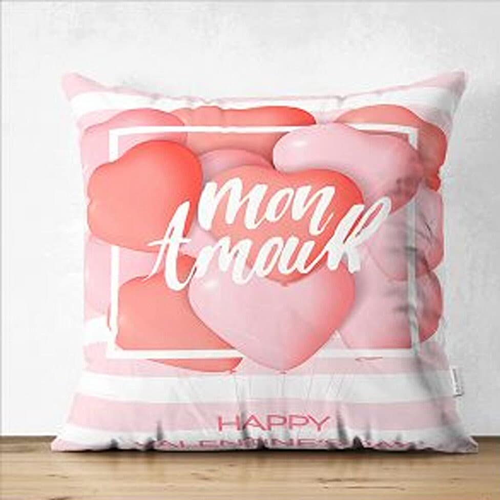 These elegant stylish and high quality suede square pillow covers (including 4 pillow covers) with pink heart, Valentine's Day and Mon Amour prints;