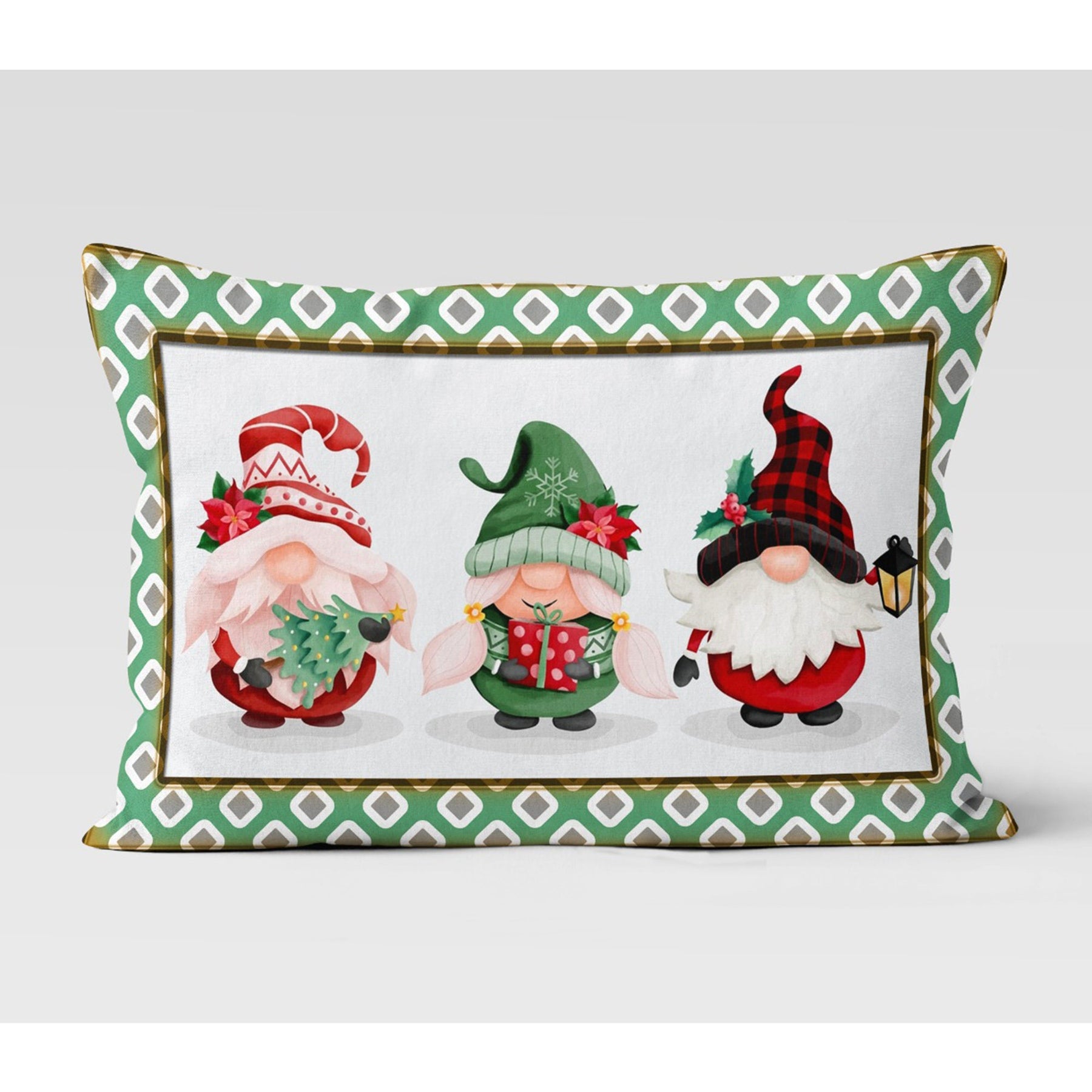 These decorative rectangular farmhouse lumbar pillow covers with Dwarf Santa, Gnome, Ho Ho, Xmas Tree print;