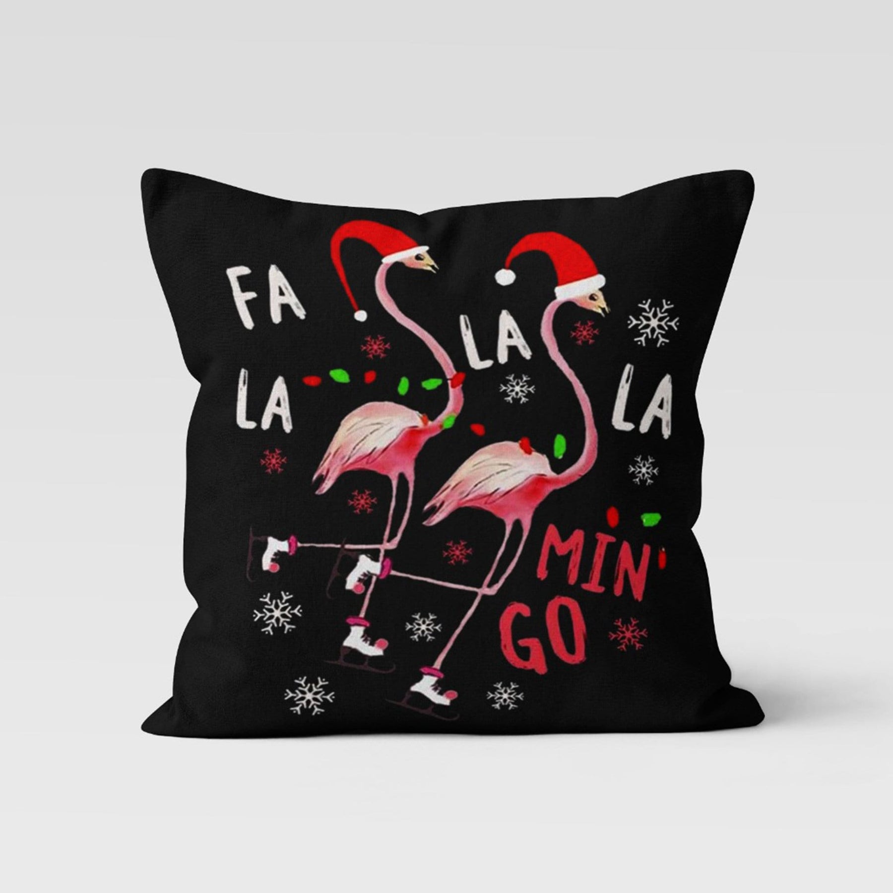 These elegant square decorative rustic farmhouse throw cushion covers with Flamingo and Santa Hat print;