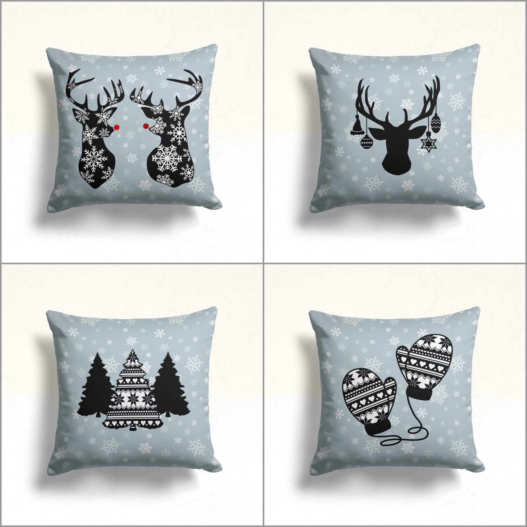 These elegant square decorative rustic farmhouse throw cushion covers with Xmas Deer, Pine Tree, Snowflake, Buckhorn and Glove print;