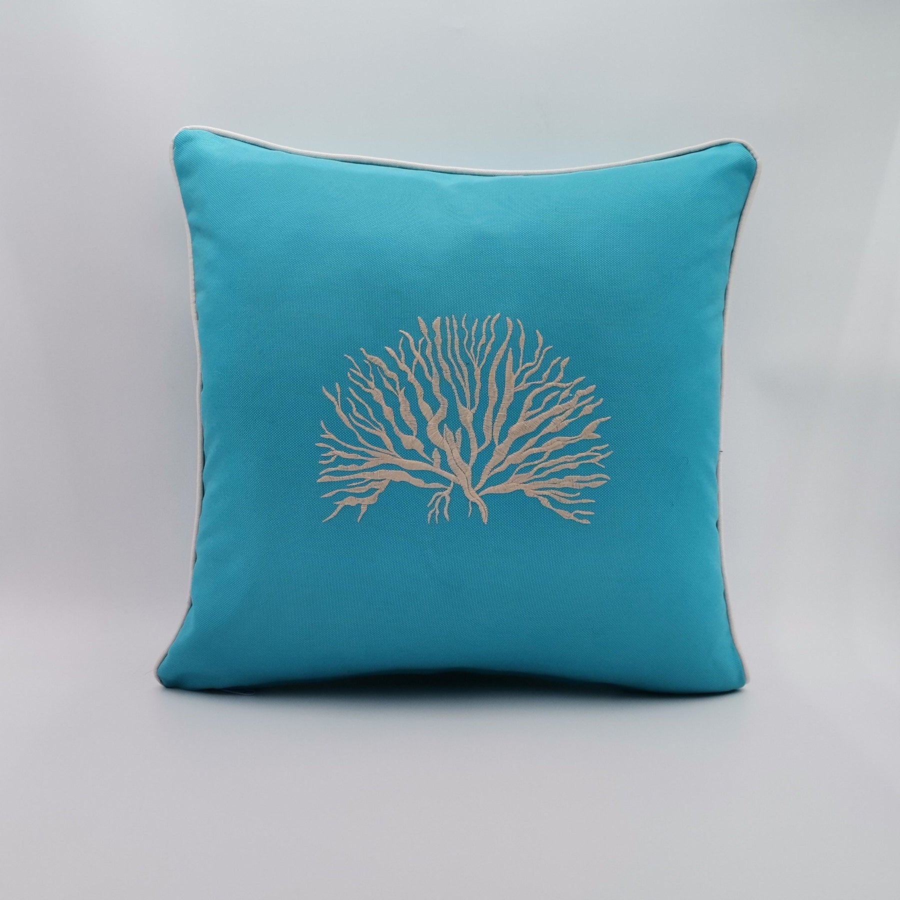 These elegant stylish and high quality embroidered square outdoor/indoor throw pillow covers with special hand sewn coral;
