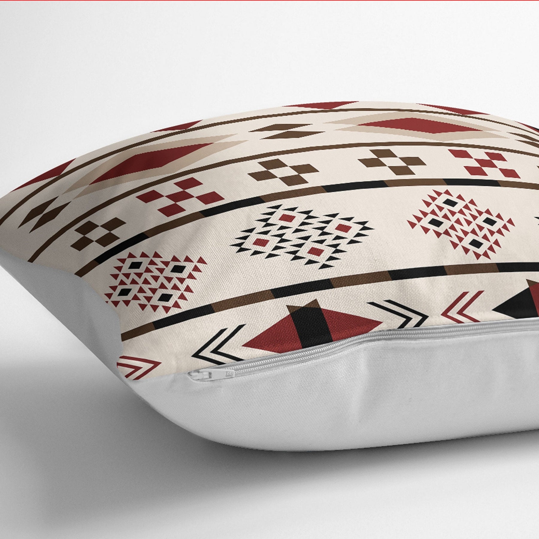Rug Design Pillow Cover|Terracotta Southwestern Cushion Case|Aztec Home Decor|Ethnic Farmhouse Cushion Cover|Decorative Geometric Pillowtop