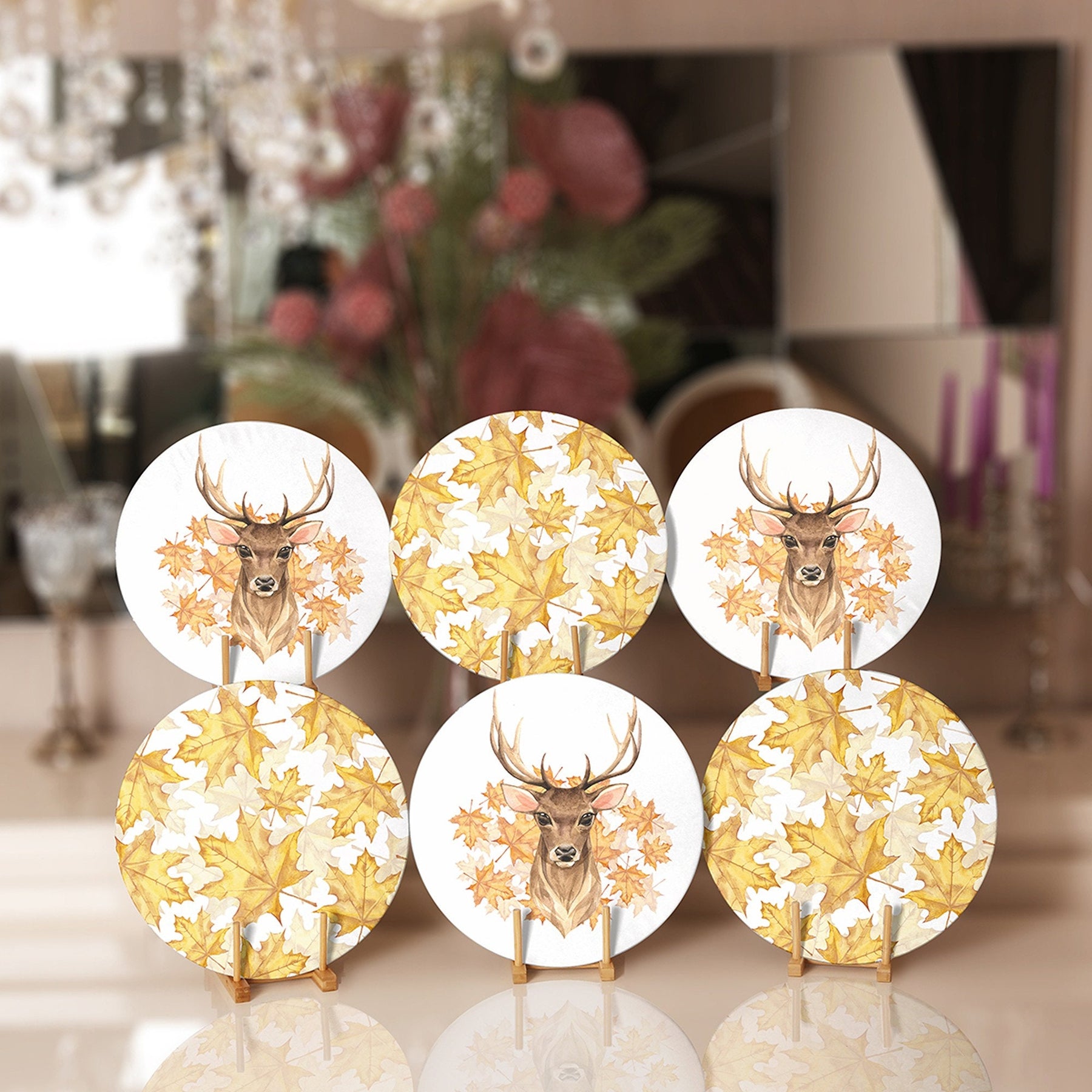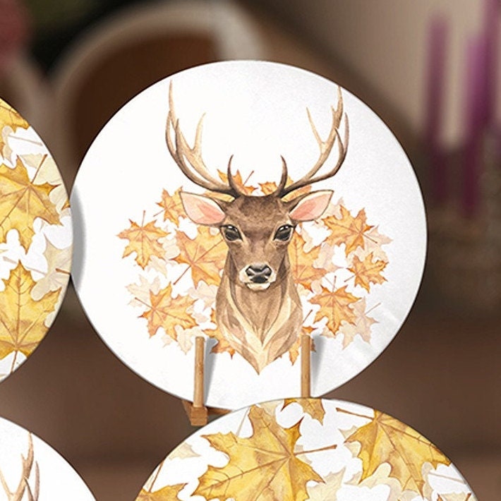 These beautiful farmhouse style table decors with Yellow Dry Leaves and Deer will add a housewarming atmosphere to your living area.