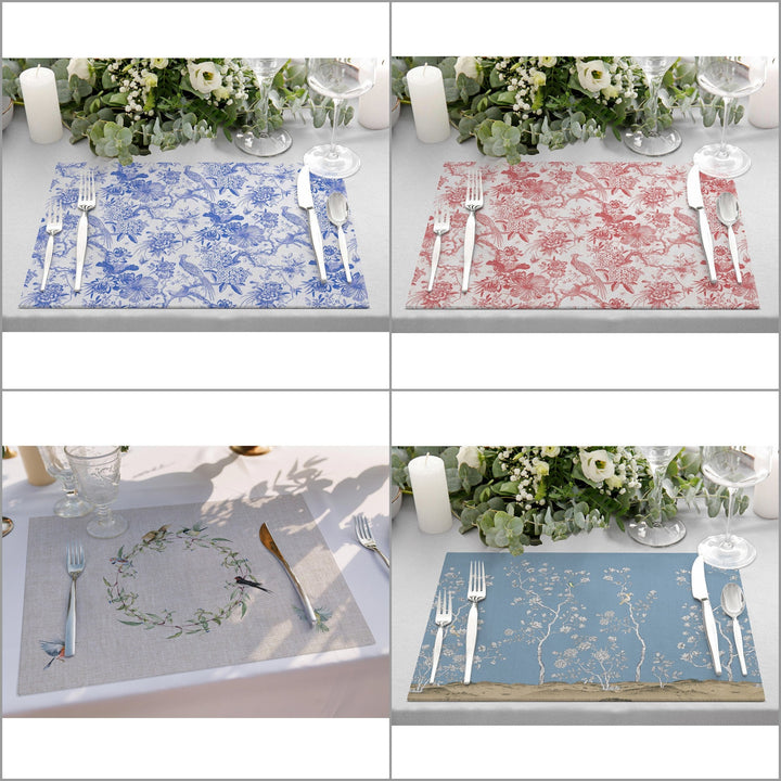 Imagine these elegant "Set of 4 Floral Bird Placemats" on your table to welcome your family and friends!