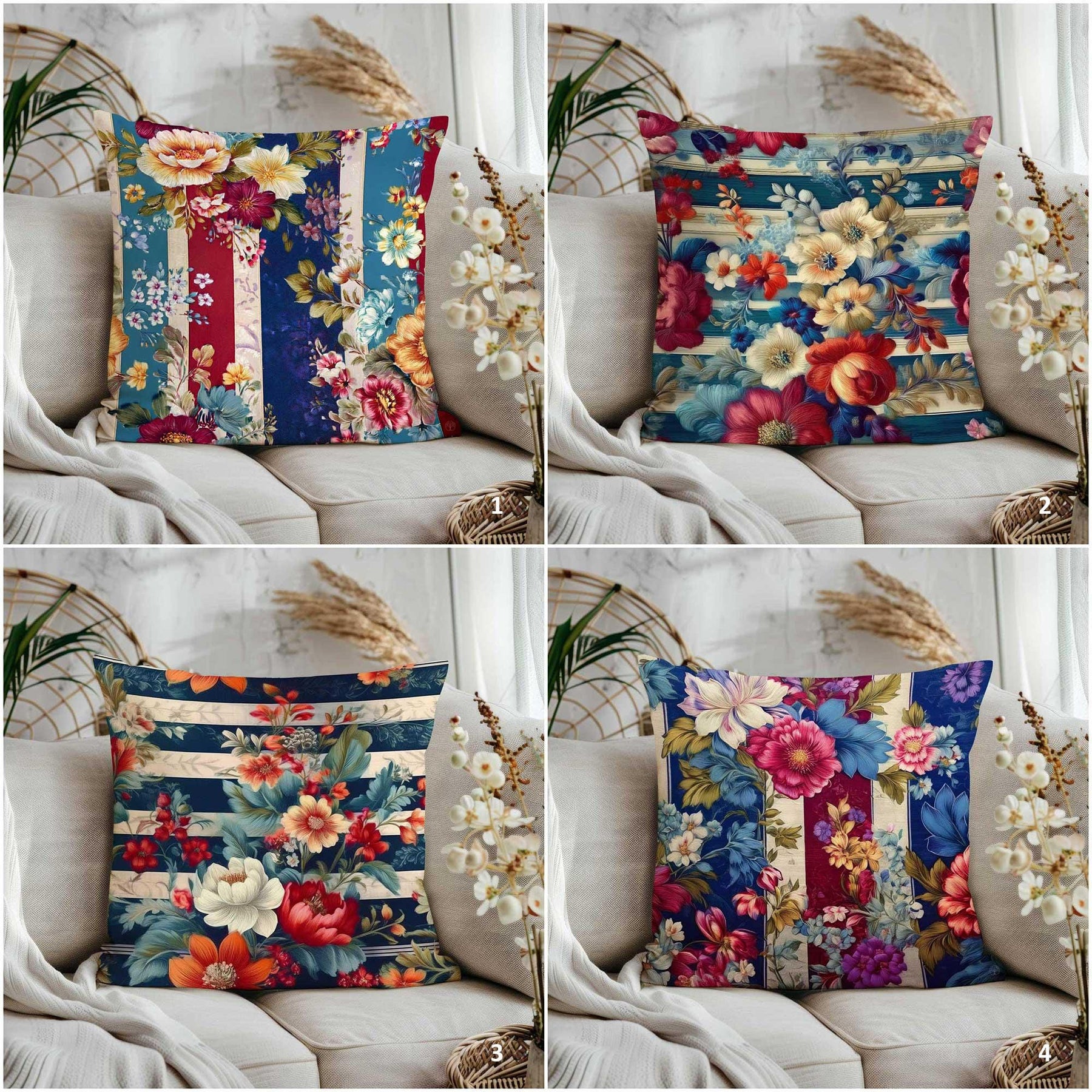 ⚓ These square decorative spring/summer trend throw pillow covers with colorful flowers on bold striped background prints;
