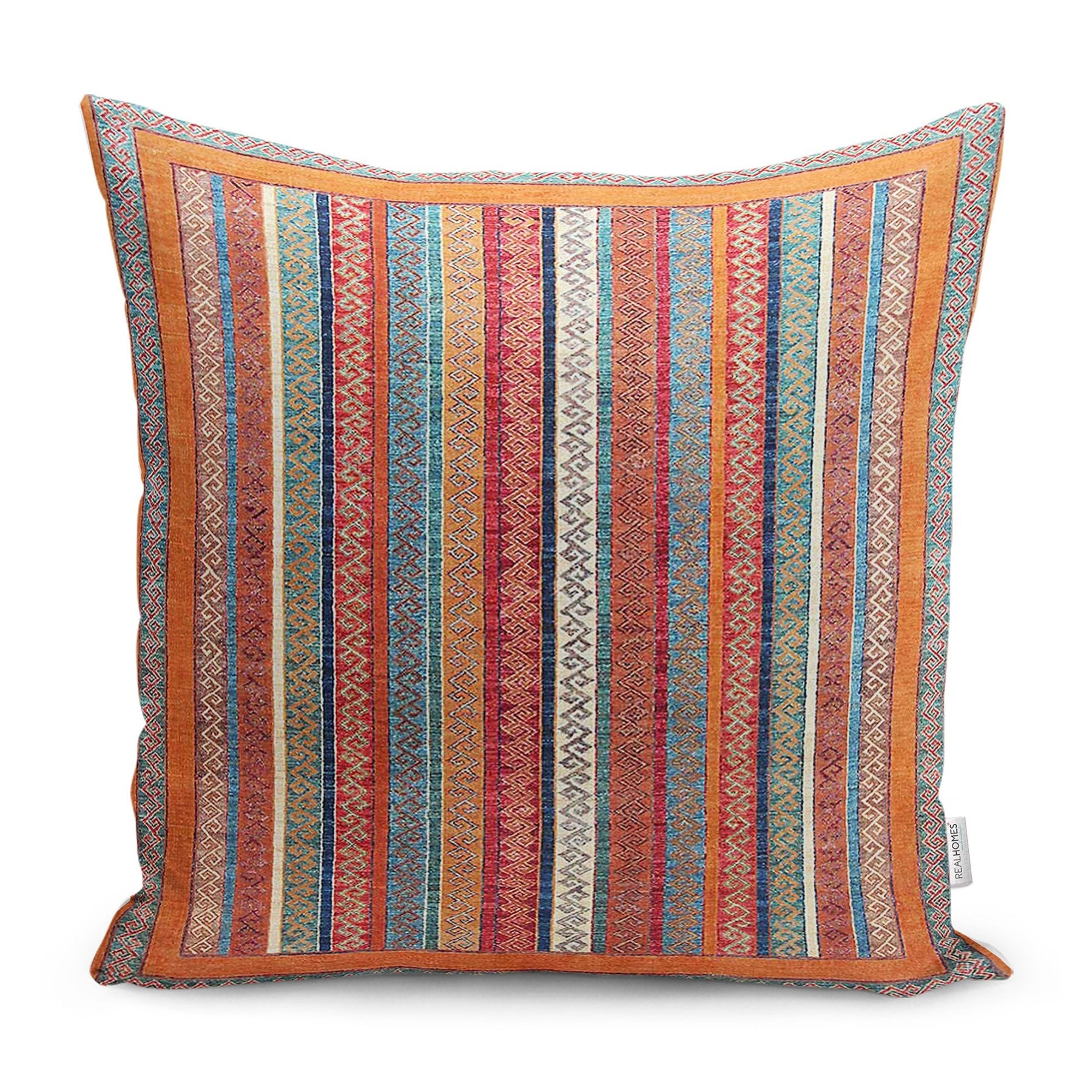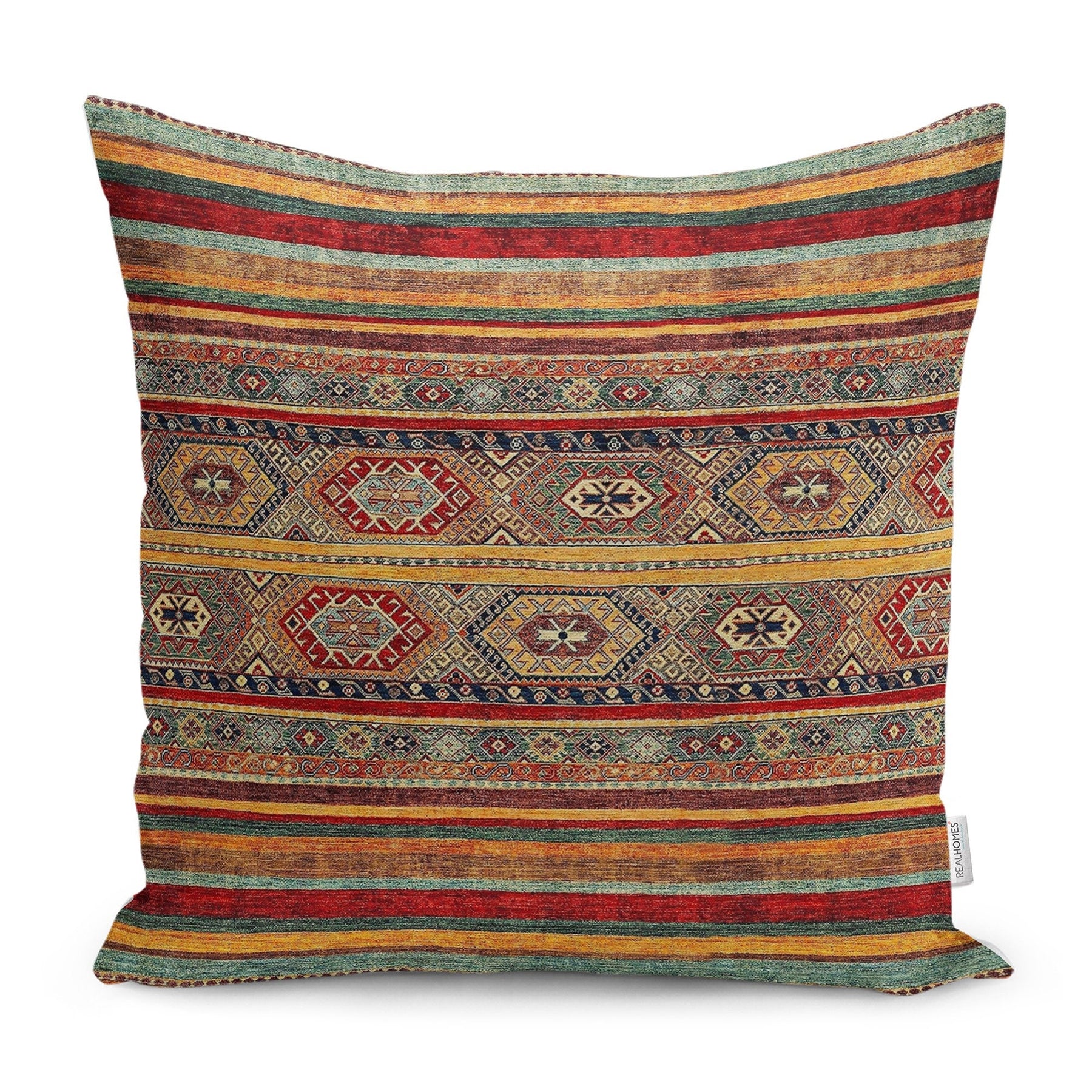 These elegant square decorative farmhouse throw pillow covers with Turkish Kilim Pattern;
