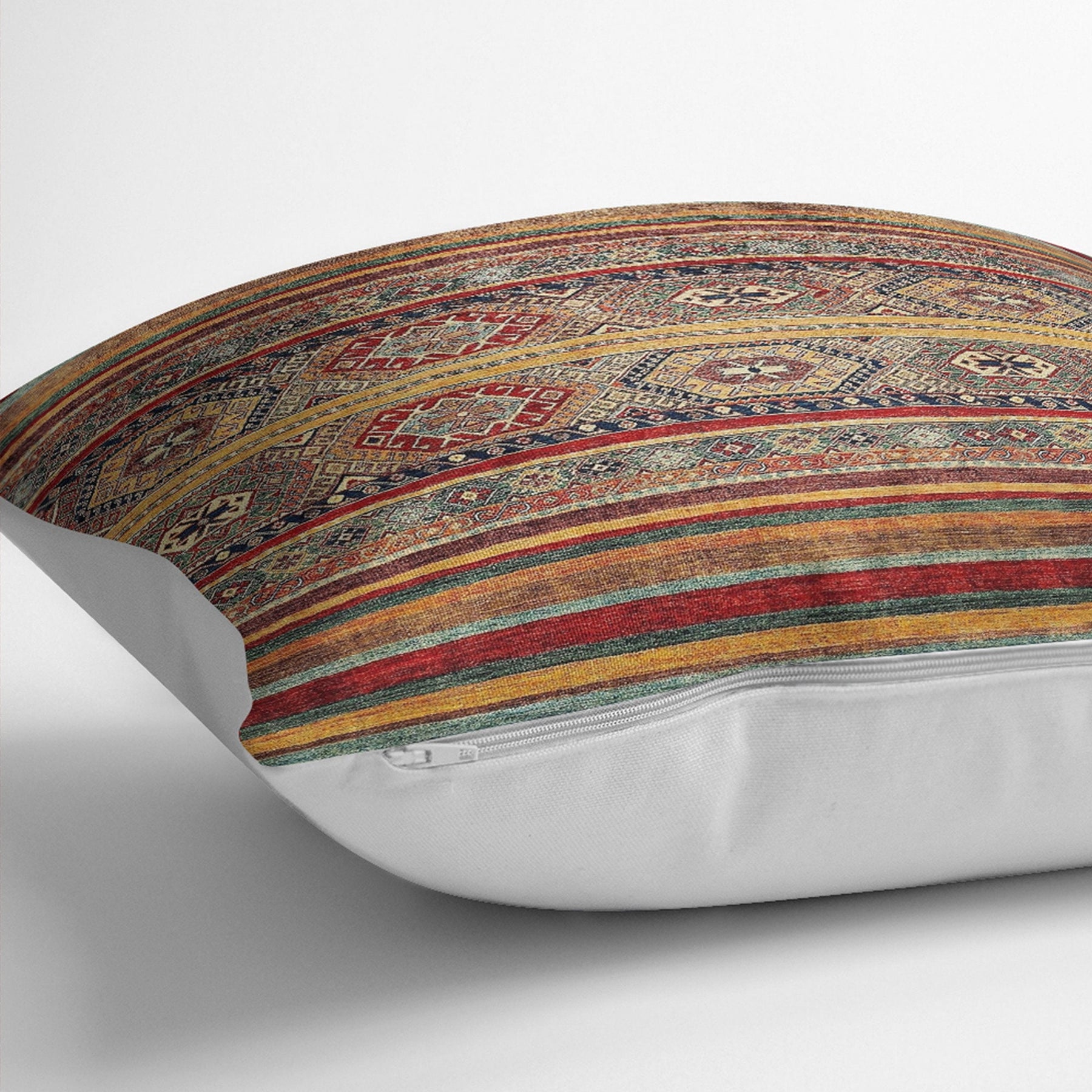 Kilim Pattern Pillow Cover|Rug Design Cushion Case|Ethnic Home Decor|Ottoman Pillow Case|Farmhouse Style Geometric Outdoor Throw Pillowtop
