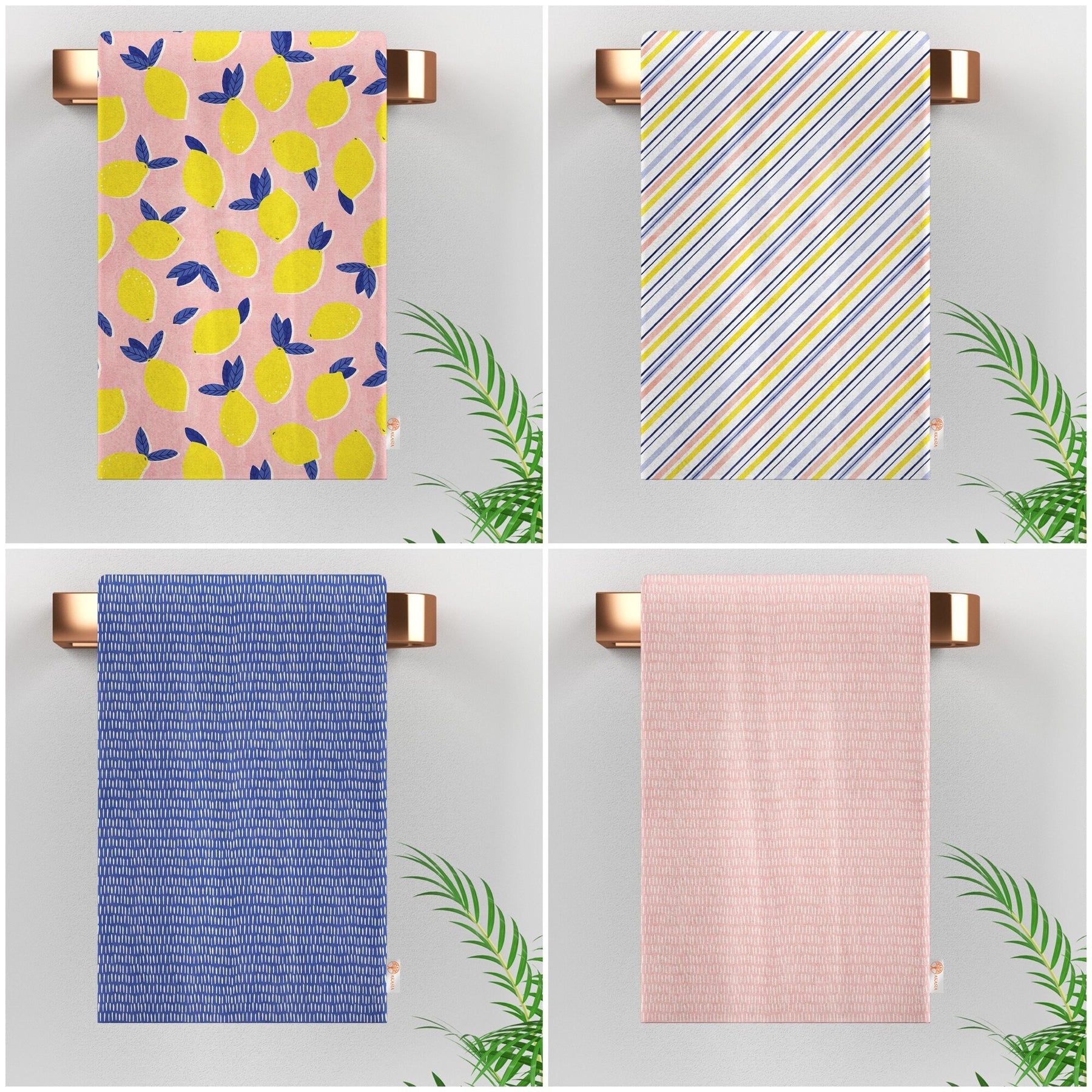 These elegant decorative rectangle kitchen/dish/hand/tea towels with Lemon and matching color abstract geometric prints;