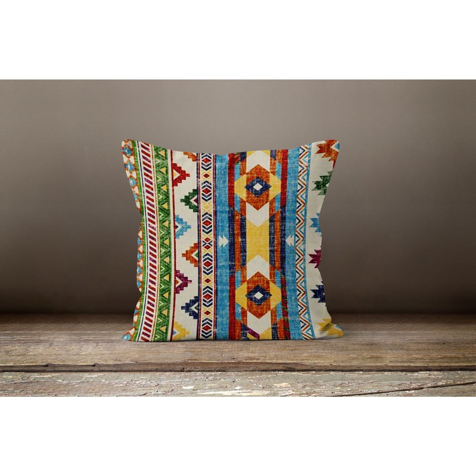 These elegant square decorative farmhouse throw pillow covers with rug design/aztec print;