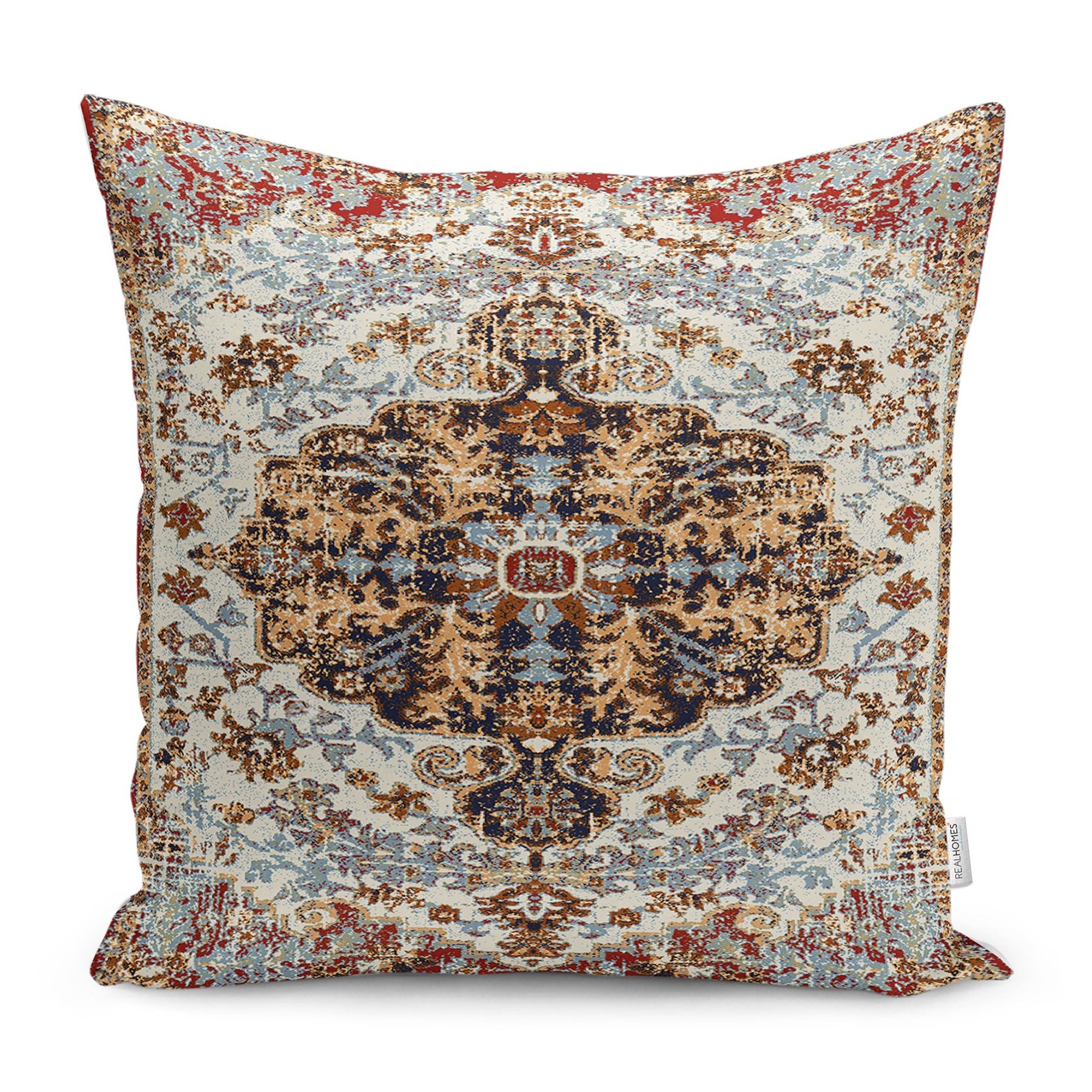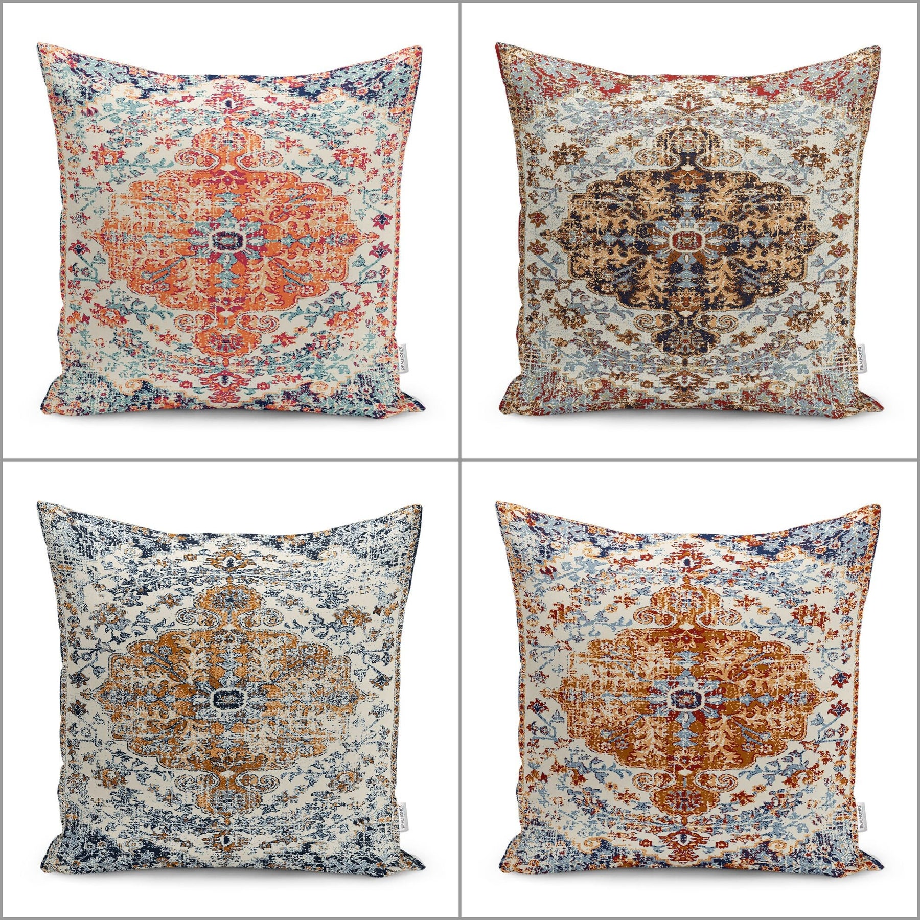 These elegant square decorative farmhouse throw pillow covers with Turkish Kilim Pattern;