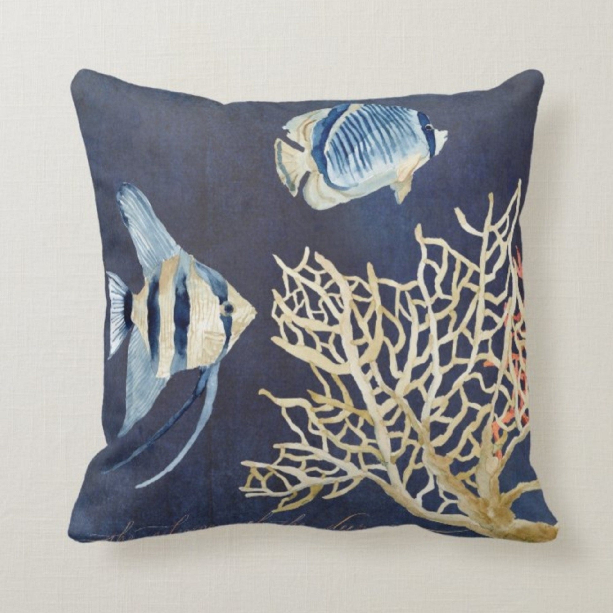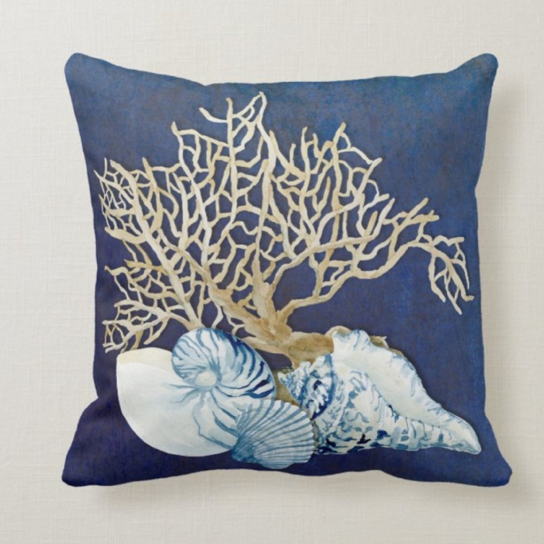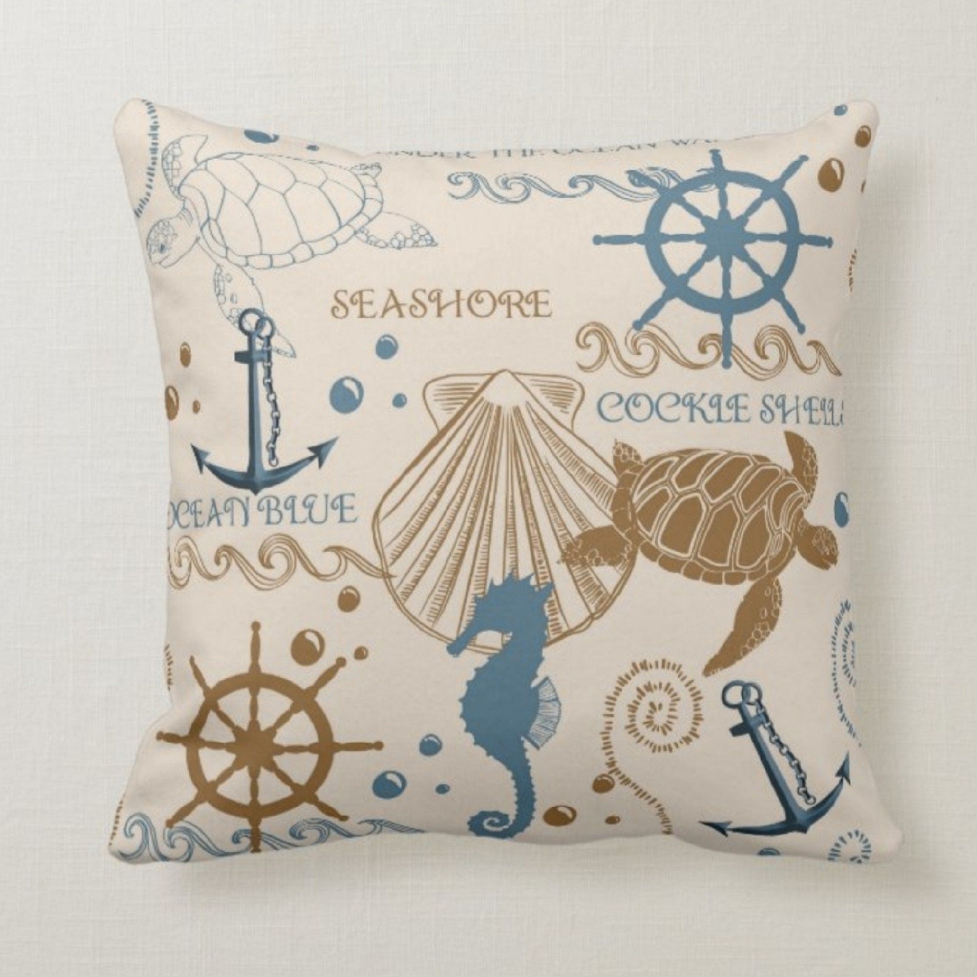 These square decorative farmhouse/beach house throw pillow covers with seahorses and starfishes;