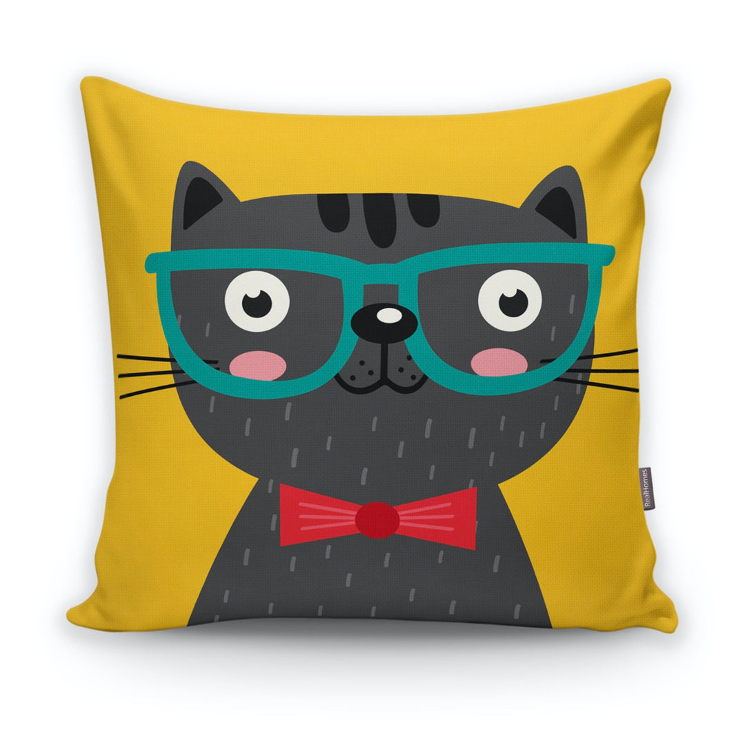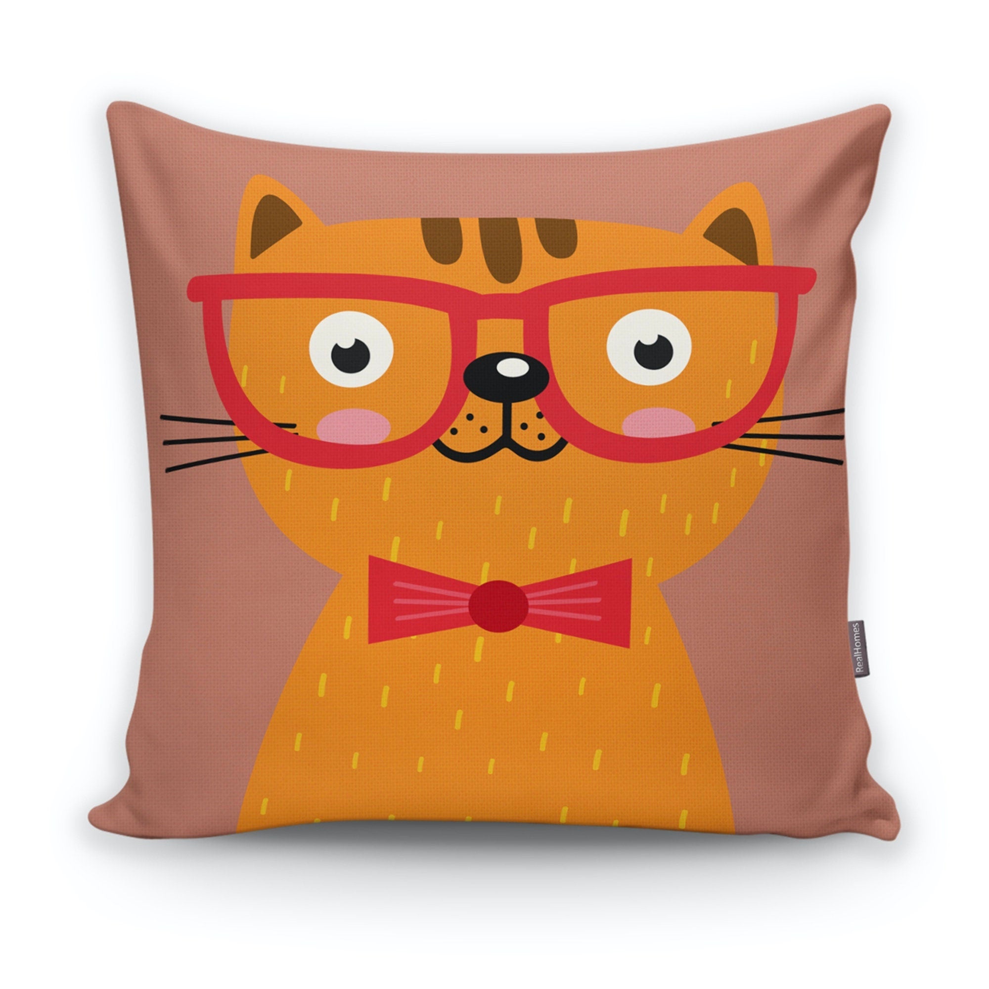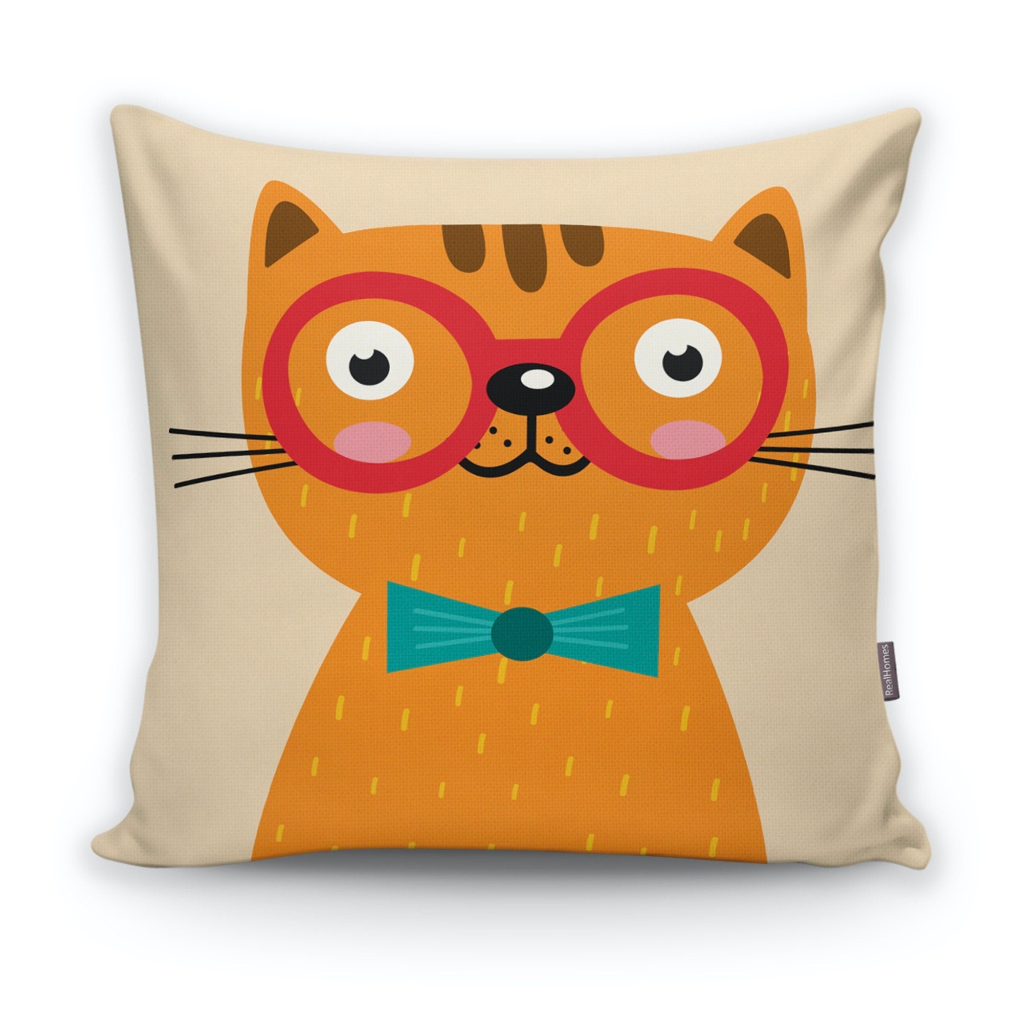 This children's throw cushion cover with digital print cartoon cat with eyeglasses;