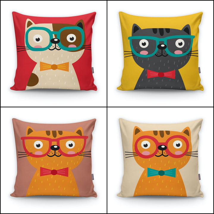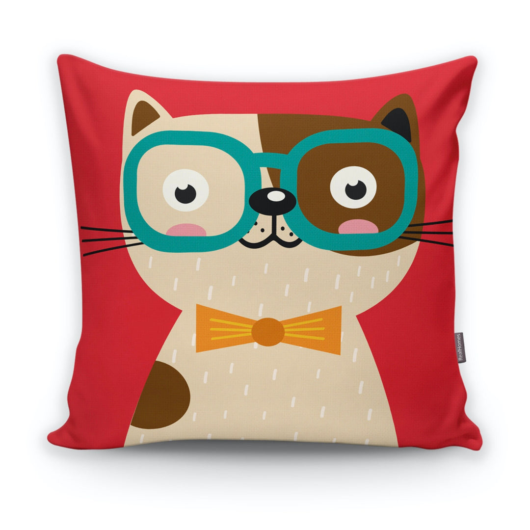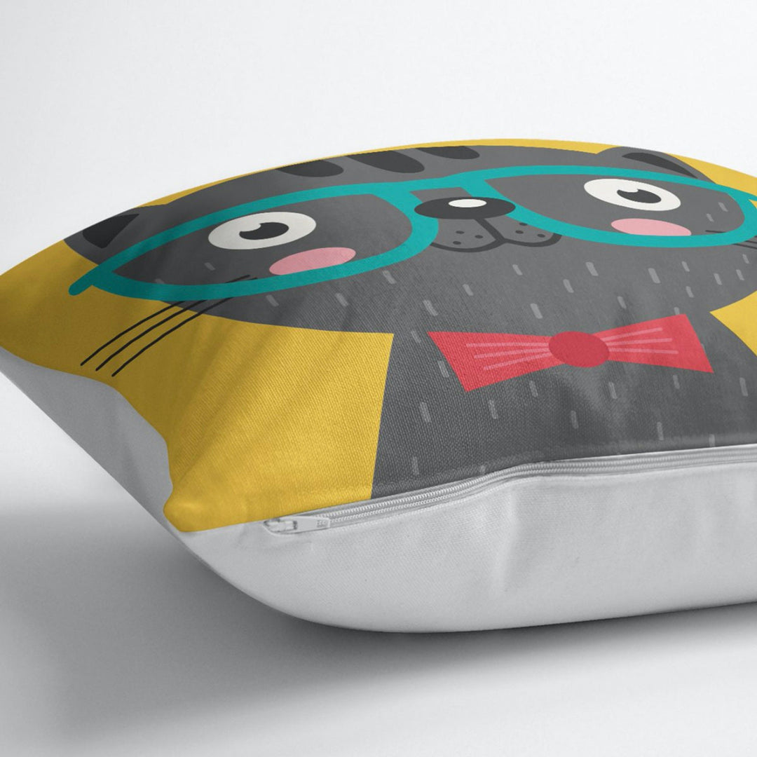 This children's throw cushion cover with digital print cartoon cat with eyeglasses;