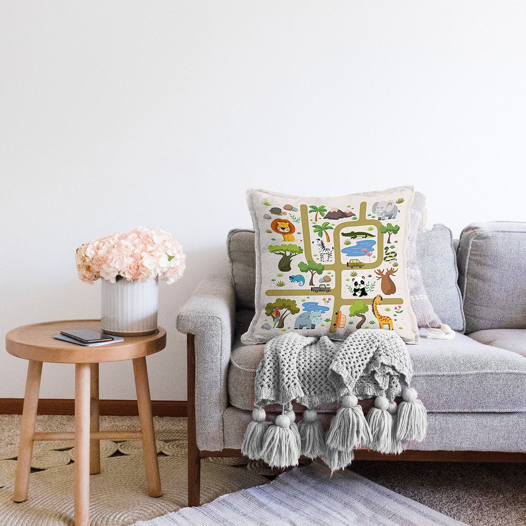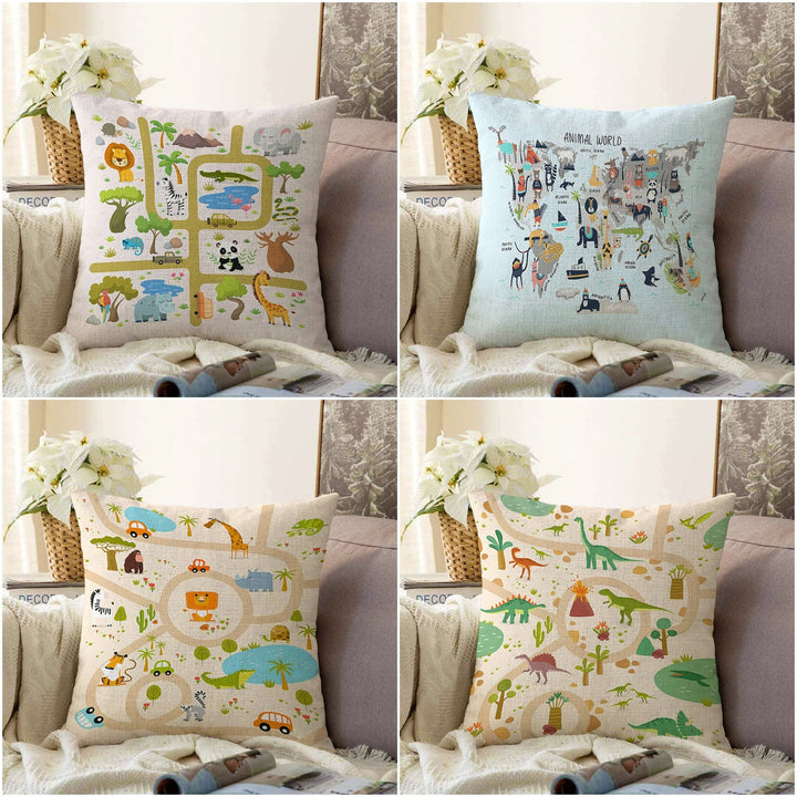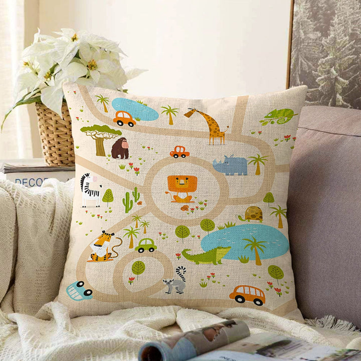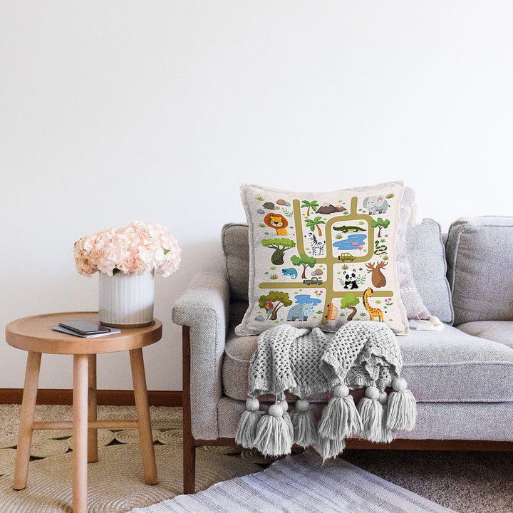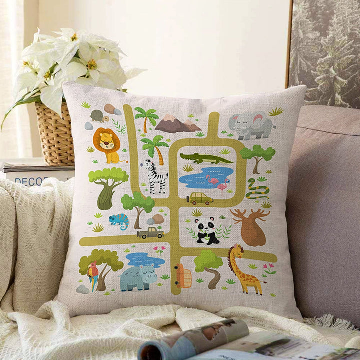 These elegant square decorative kids throw pillow covers with Animal World and Educational Game Path prints;