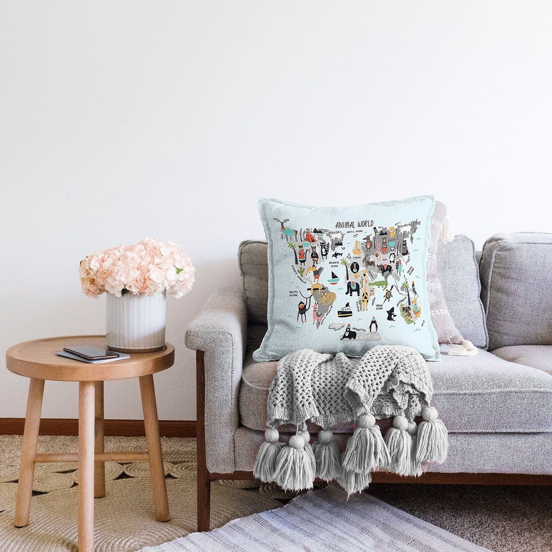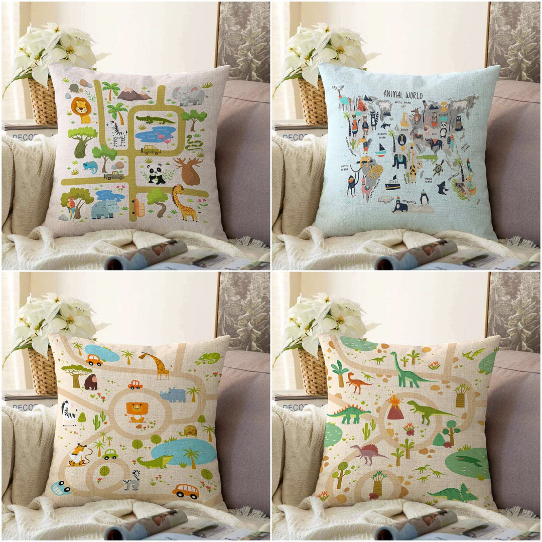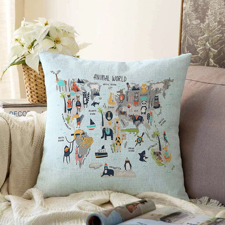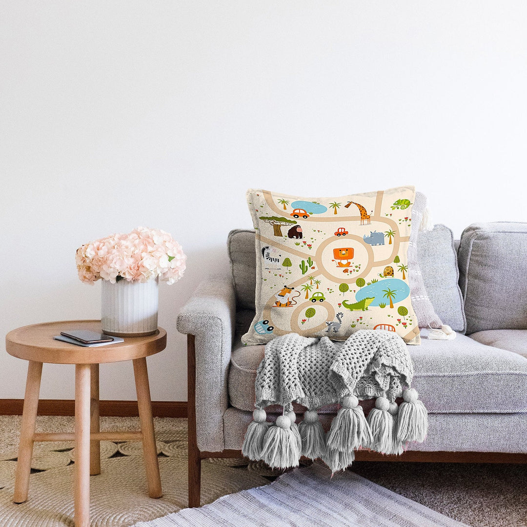 These elegant square decorative kids throw pillow covers with Animal World and Educational Game Path prints;