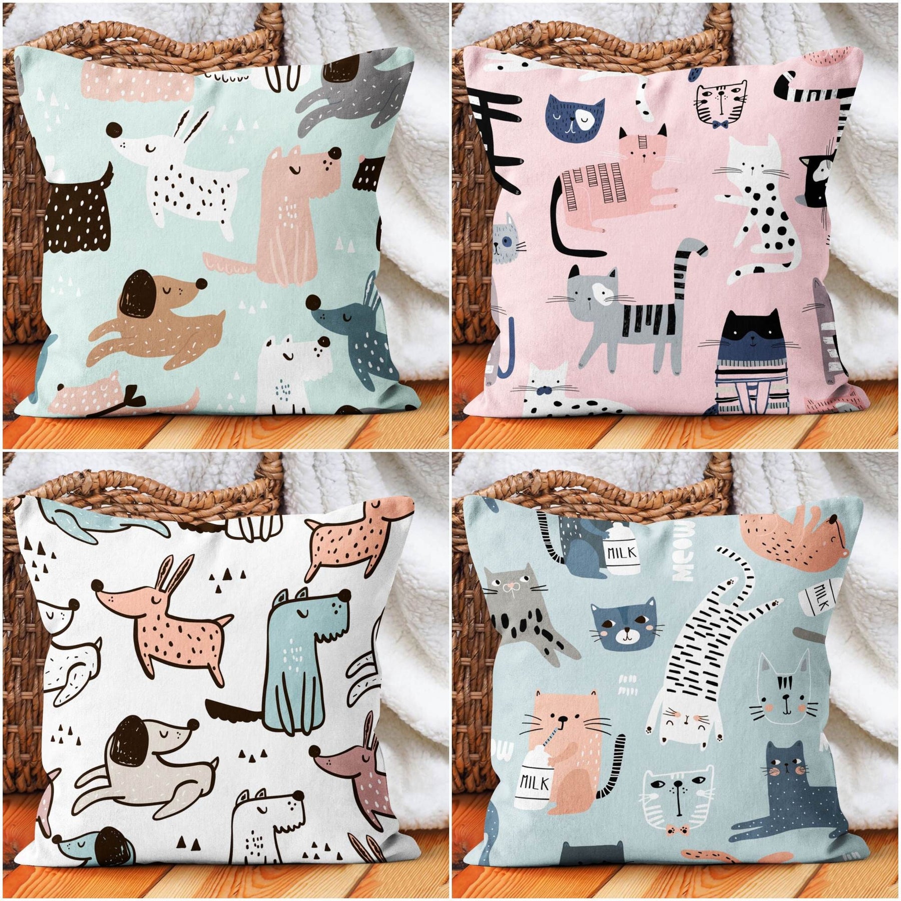 These elegant square decorative farmhouse throw pillow tops/covers with cats and dogs;
