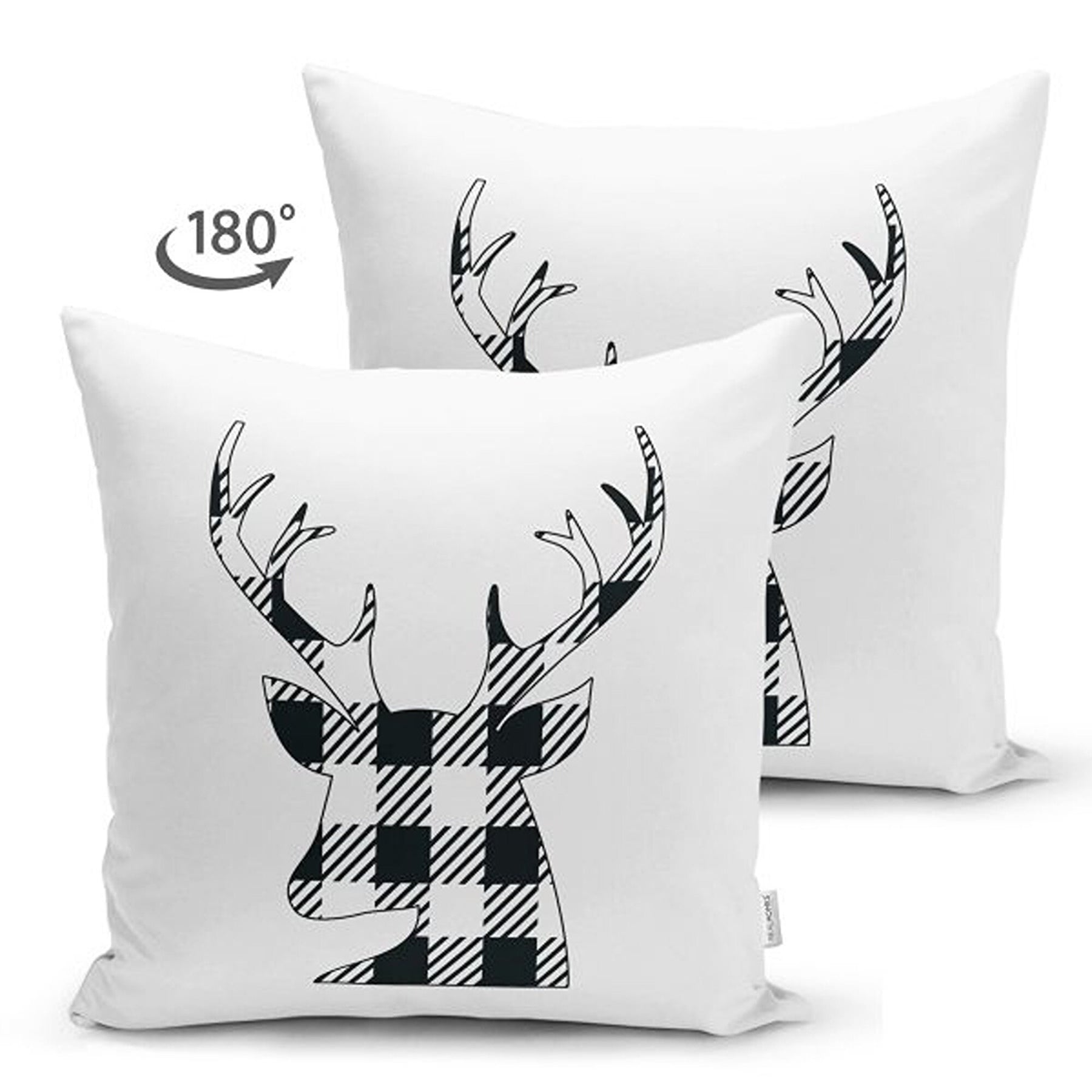 These elegant square decorative double-sided winter trend throw pillow covers with Black White Checkered Xmas Deer and Tree, Buckhorn, Xmas Truck with Pine Tree, Christmas Tree Farm Fresh prints;