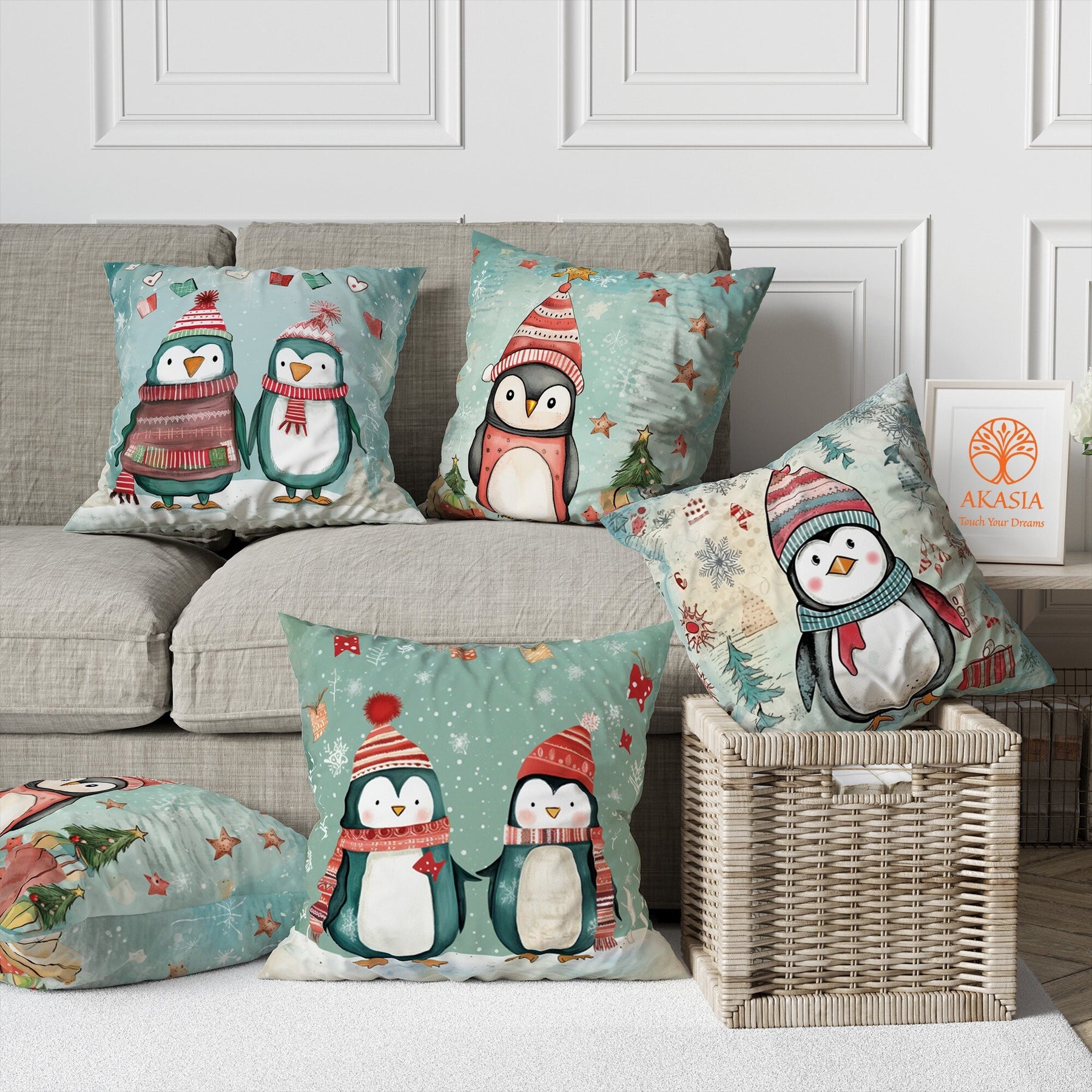 Imagine these "Winter Penguin Pillow Cases" on your sofa/seat to welcome your family and friends!