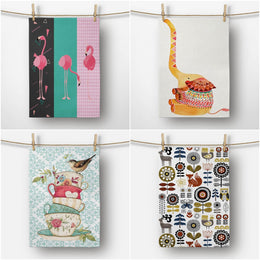It's also time to renew your mood. We have a wide range of variety that you may like. Recently, due to the rush of your working life, you may not have a chance to go to an orchard. But, we can move the orchard into your home life with our fashionable decorative hand towels. The fruit-decorated towels will boost your mood and give the feeling of the change you need in your home decoration. Or, if you want more than an orchard, we have a selection of animals such as elephants, flamingos decorated hand towels. You will like the "Tea-riffic Times" adorned one when you sip from your 'tea' mug in the kitchen.