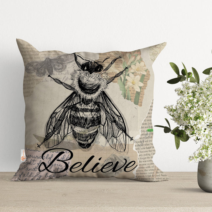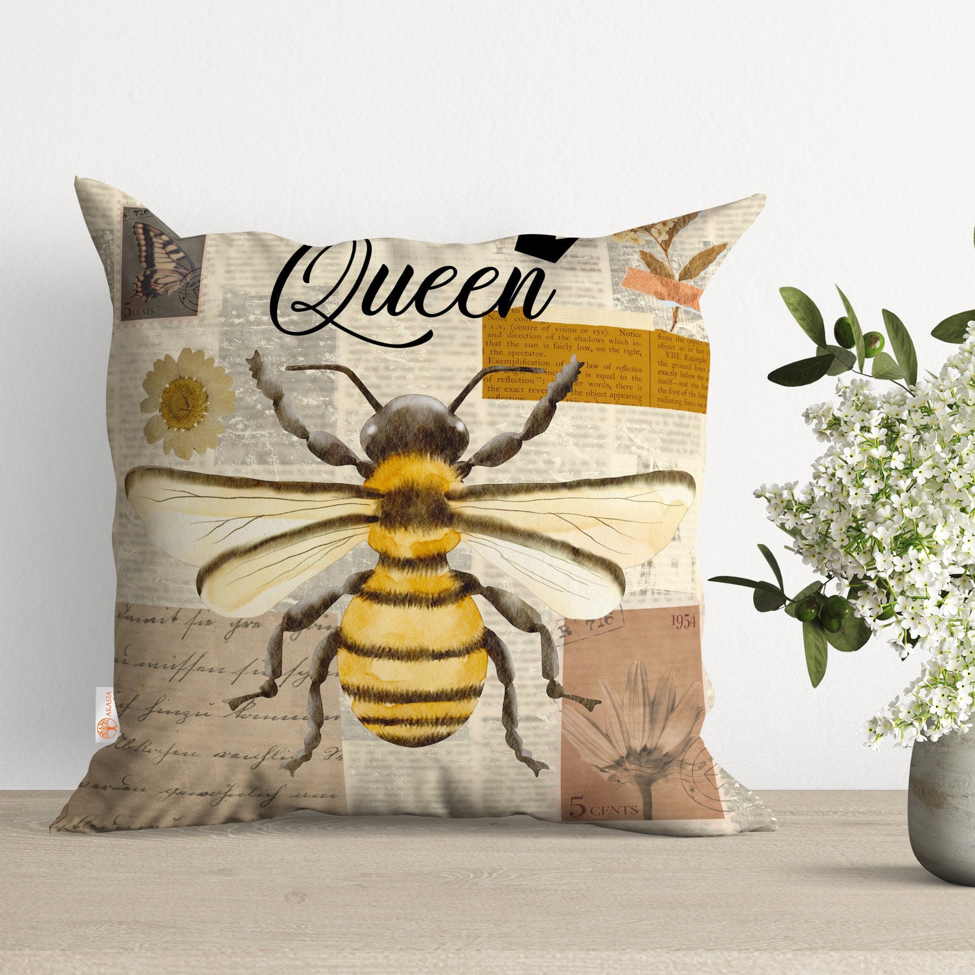 These elegant square decorative farmhouse throw pillow covers with bee;