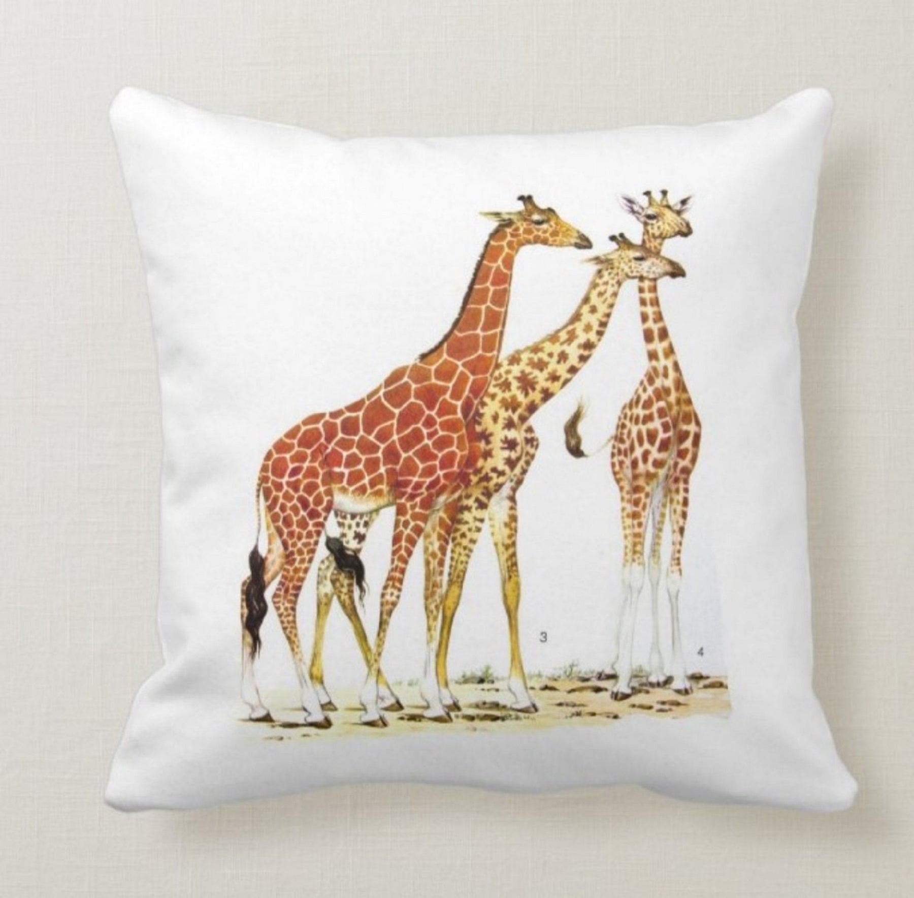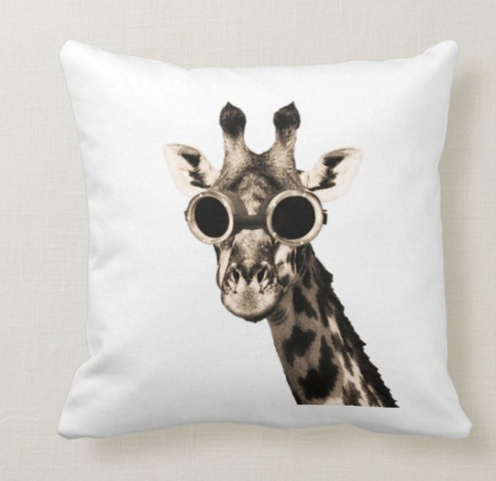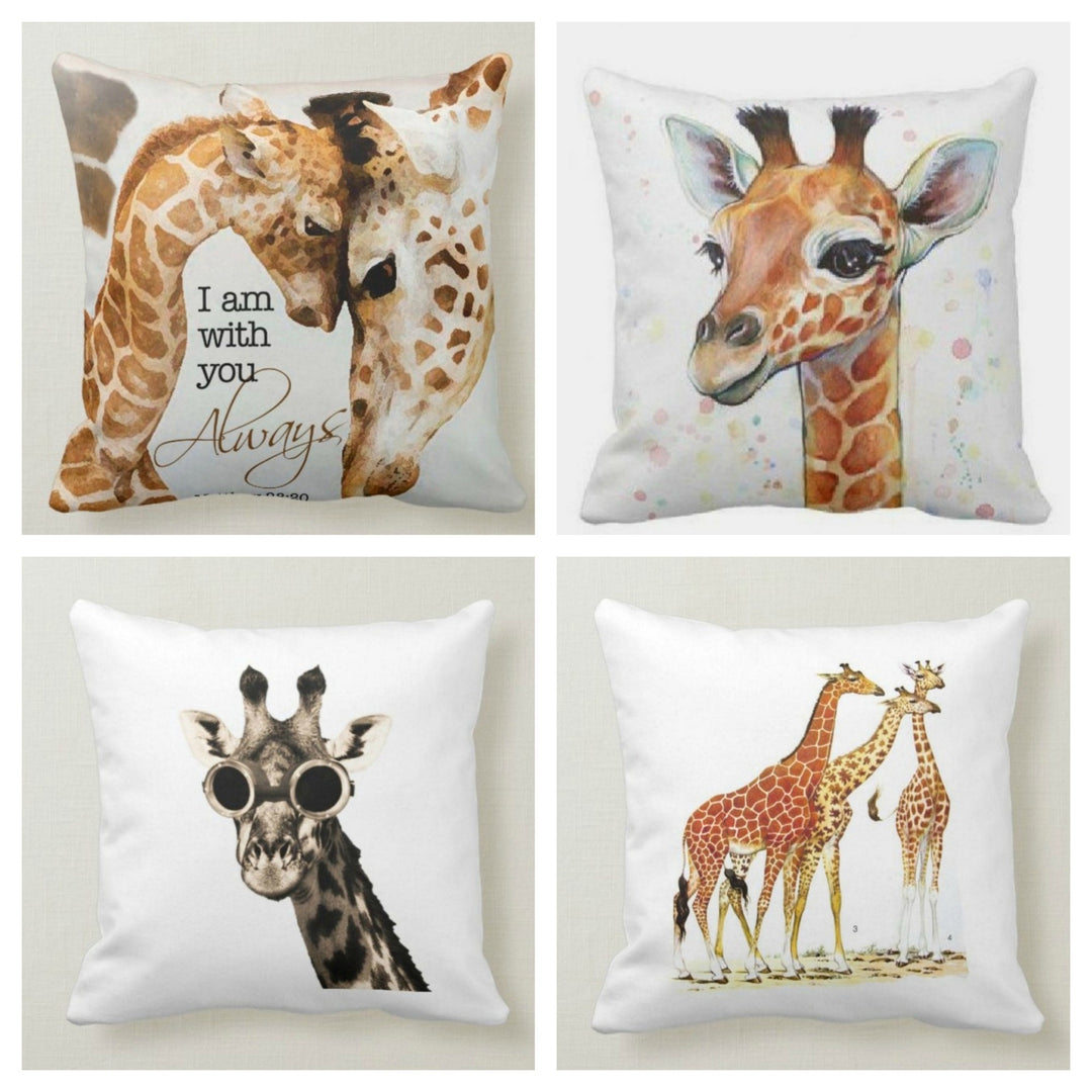 These square decorative farmhouse throw cushion covers with giraffes;