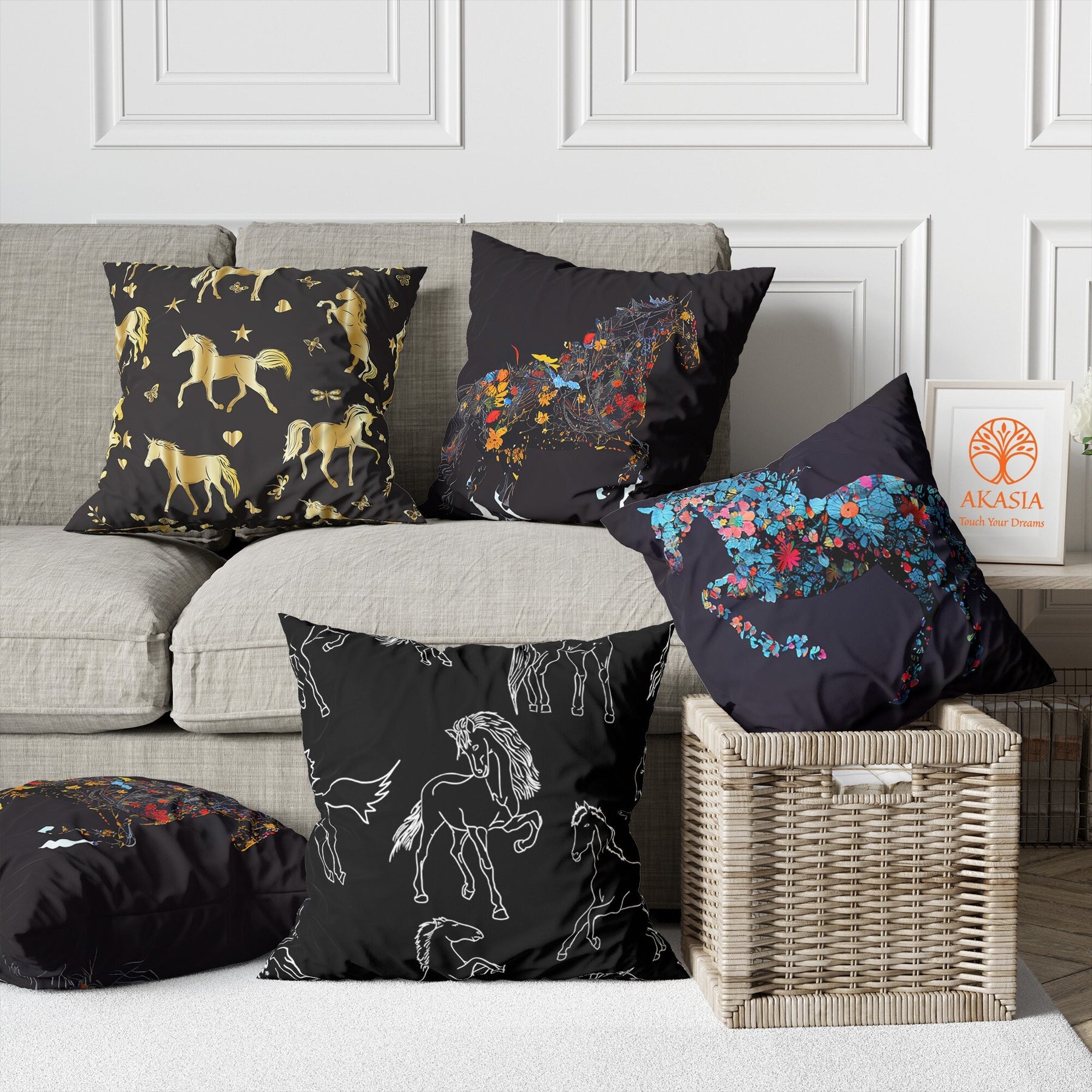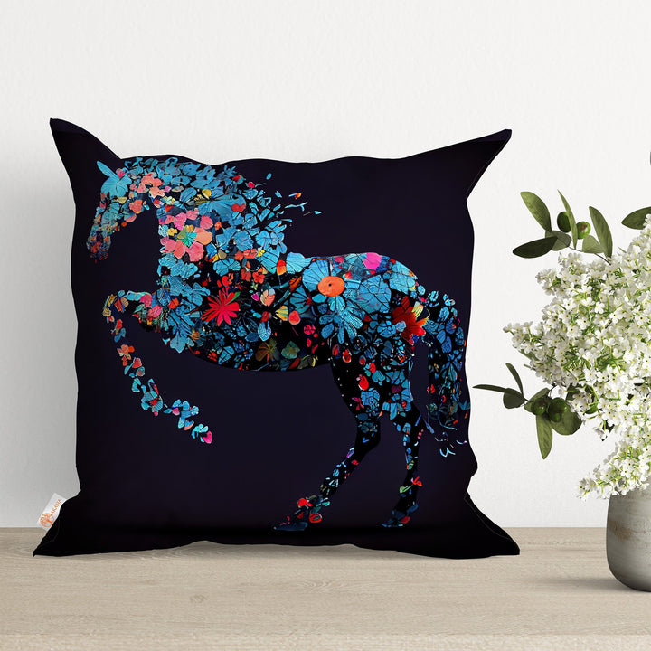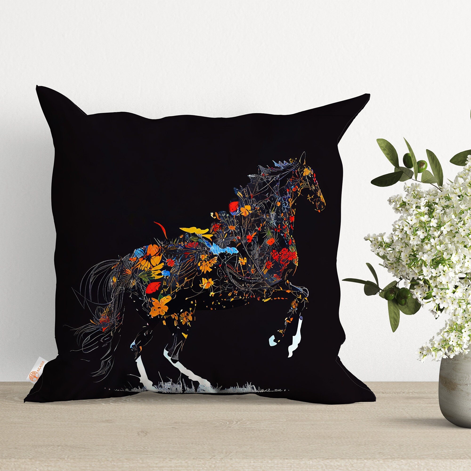 ⚓ These elegant square decorative throw pillow covers with Horse and Flower Illustration prints;