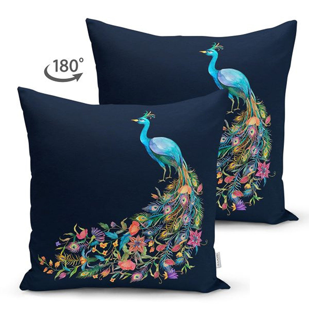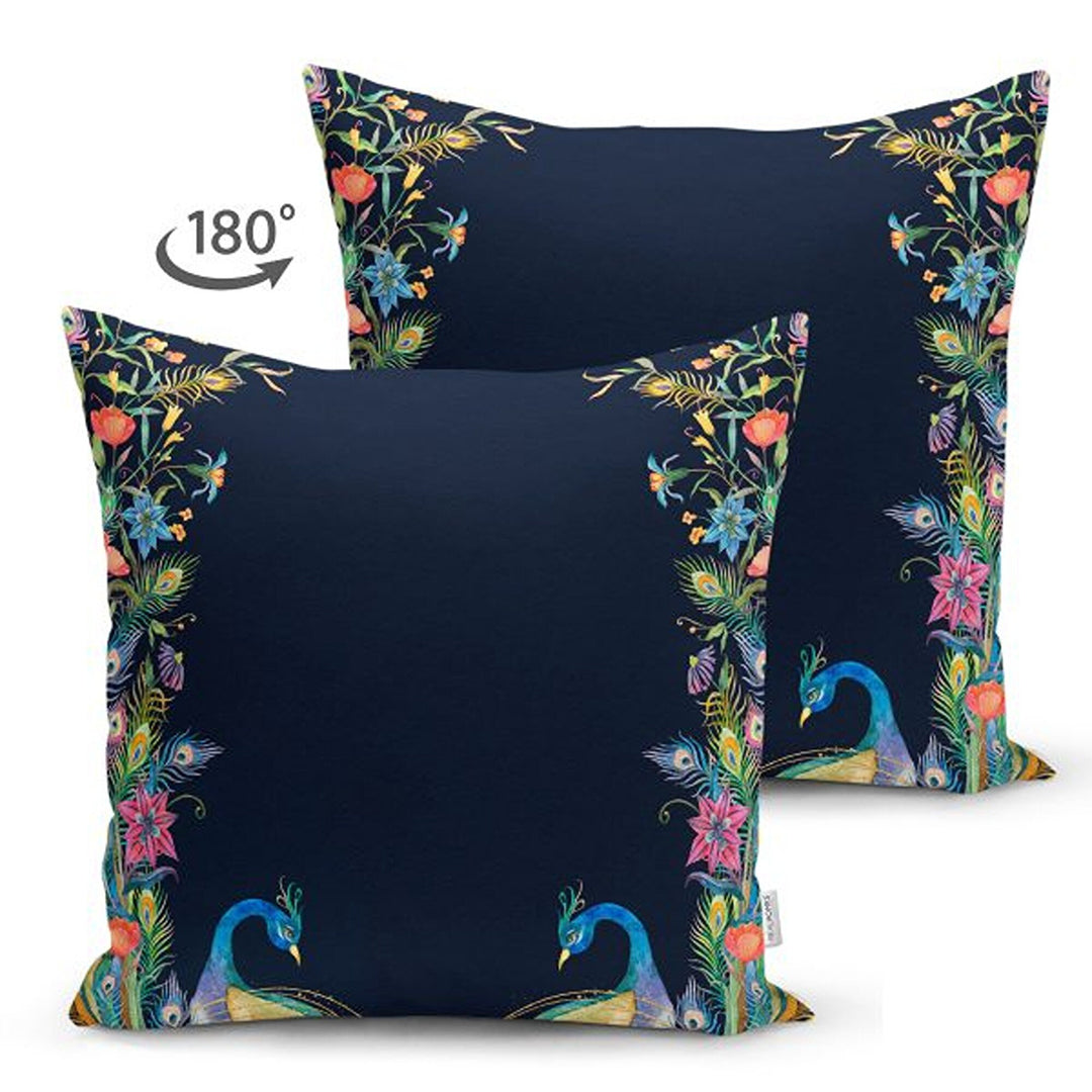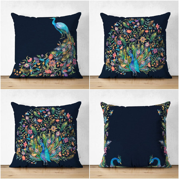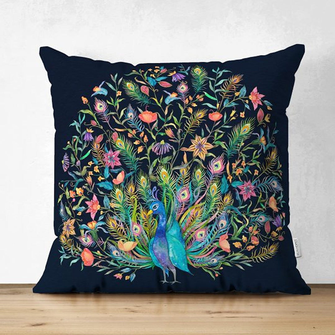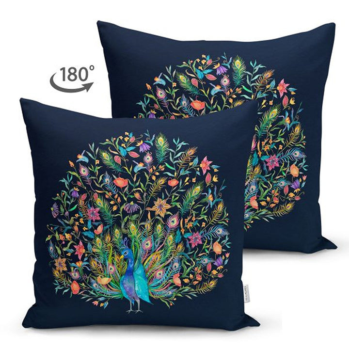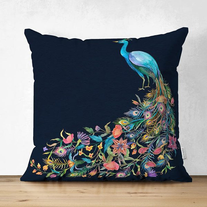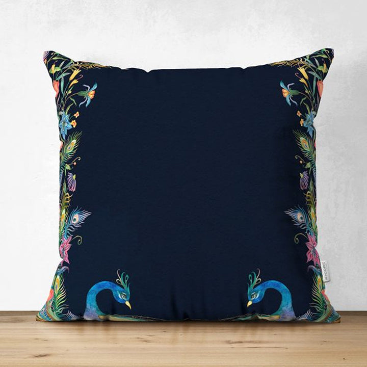 These elegant square decorative double-sided floral pillow covers with colorful floral peacock;