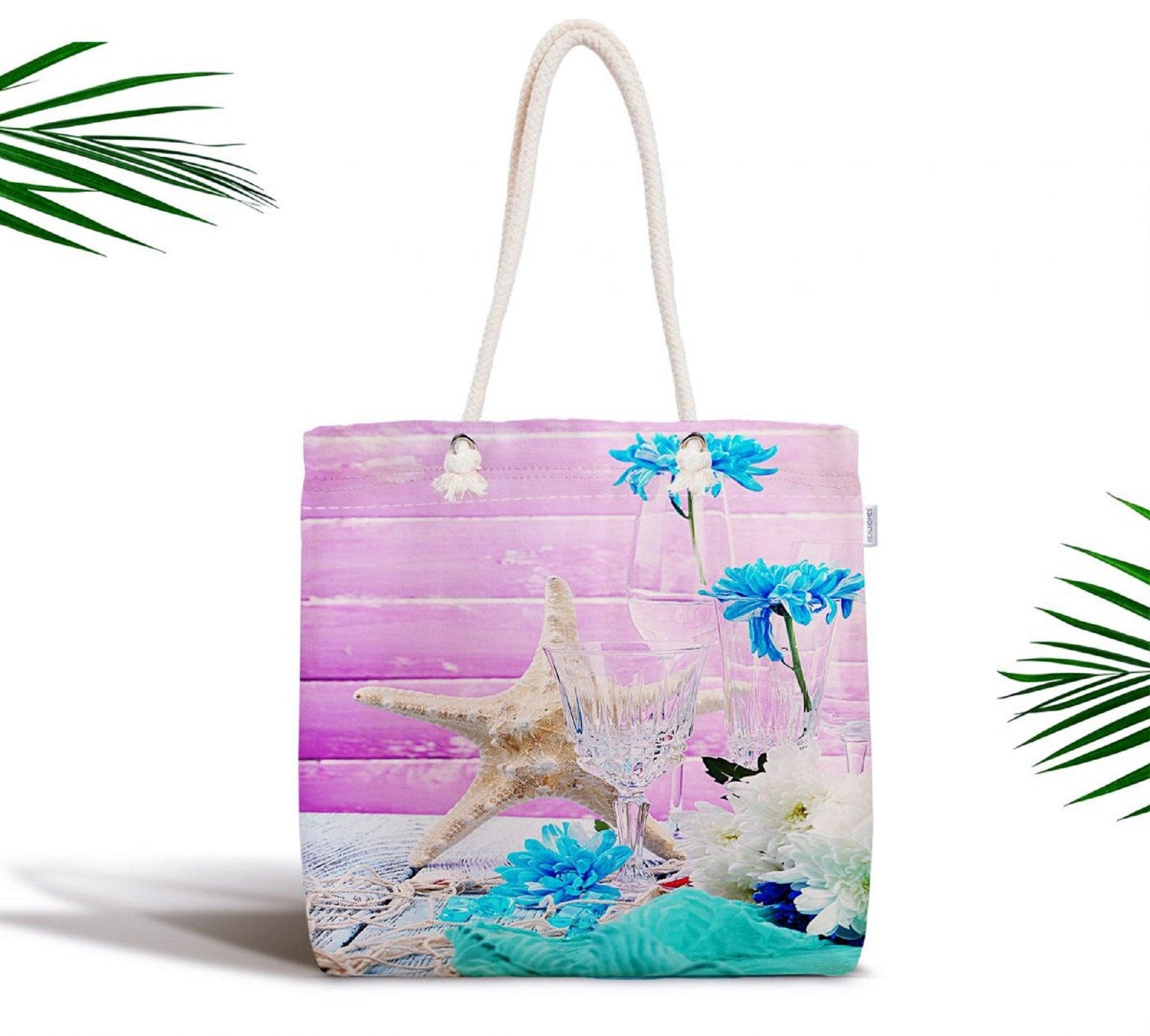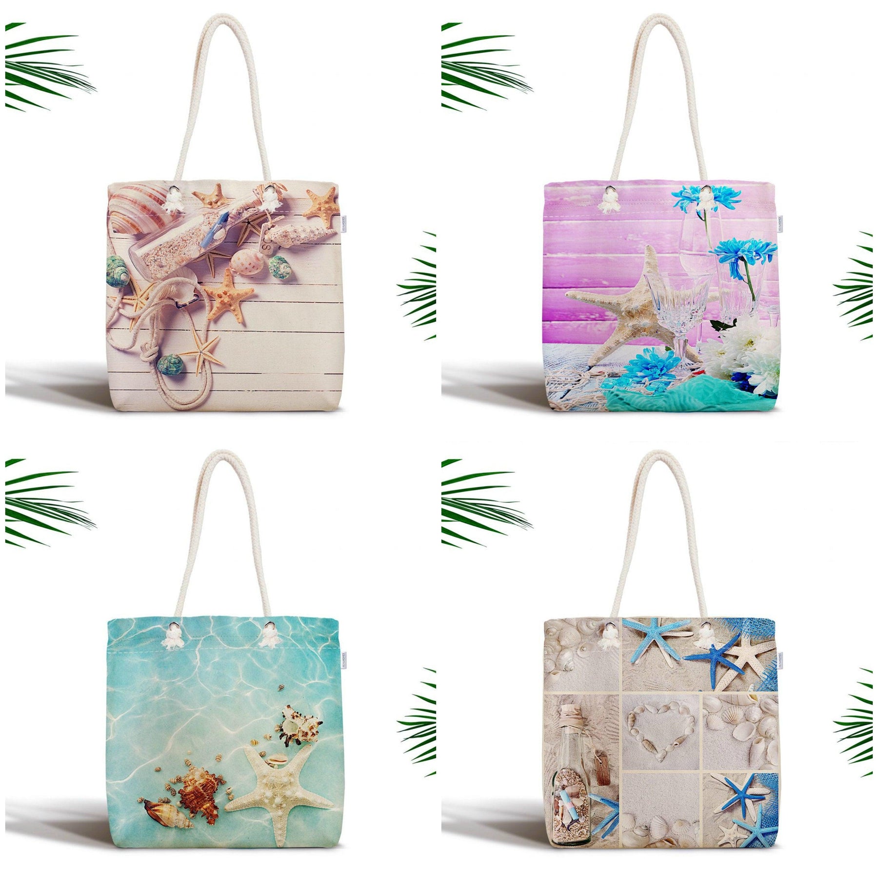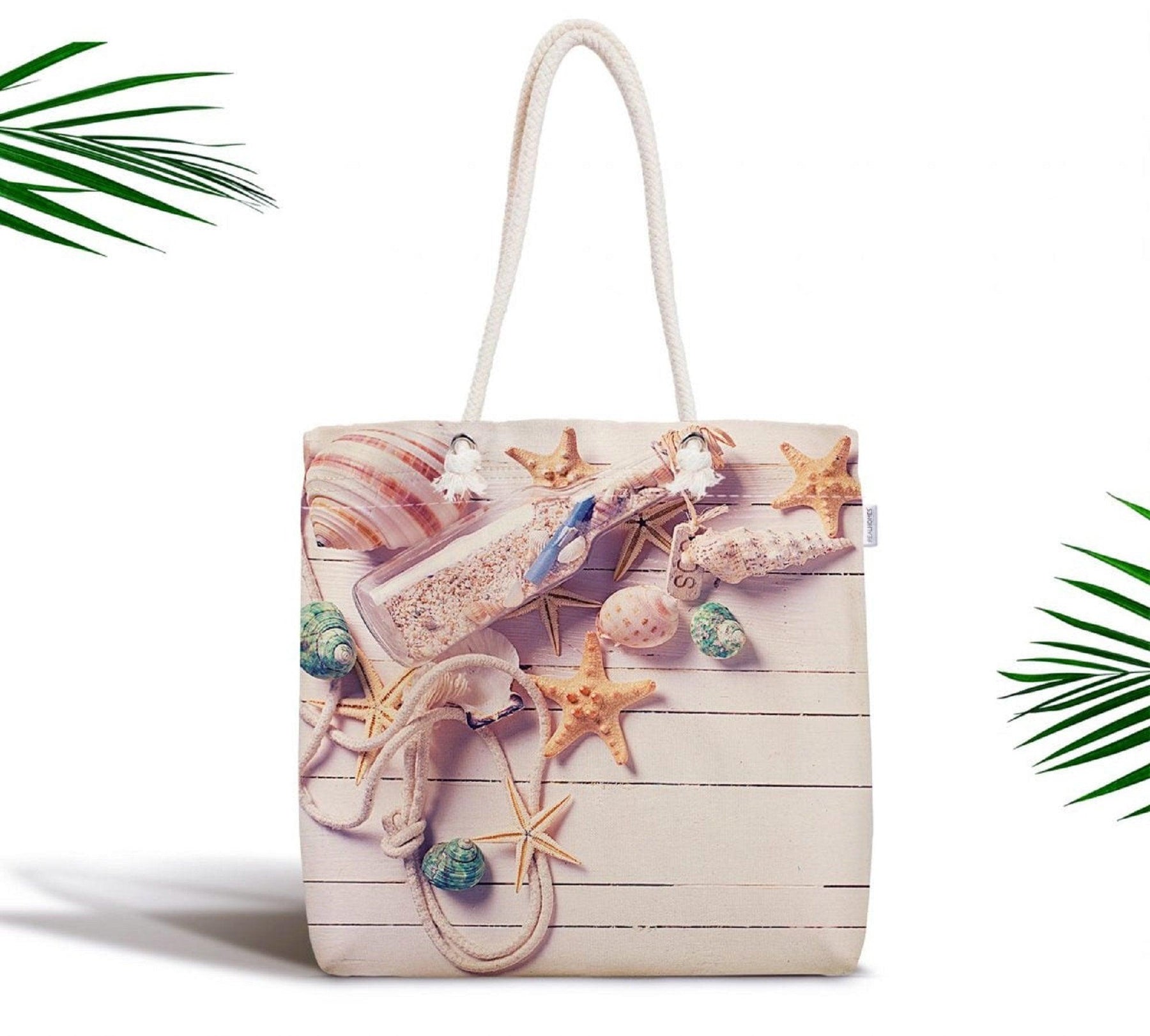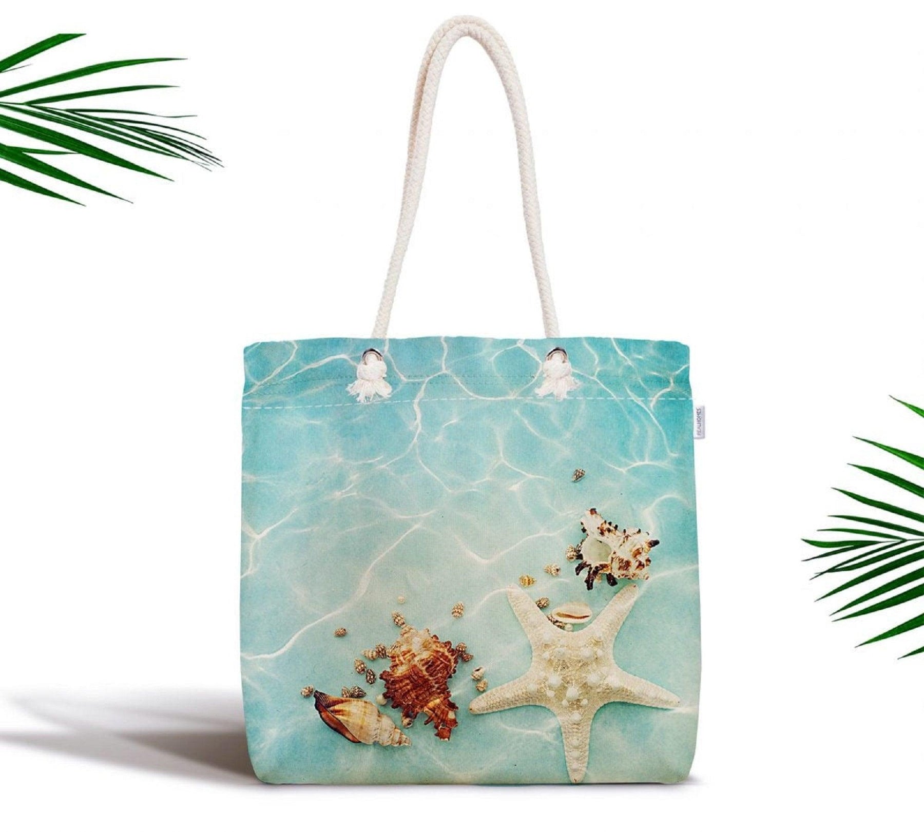 This elegant modern colorful nautical design digital printed fabric tote/messenger bag with starfish and seashells;