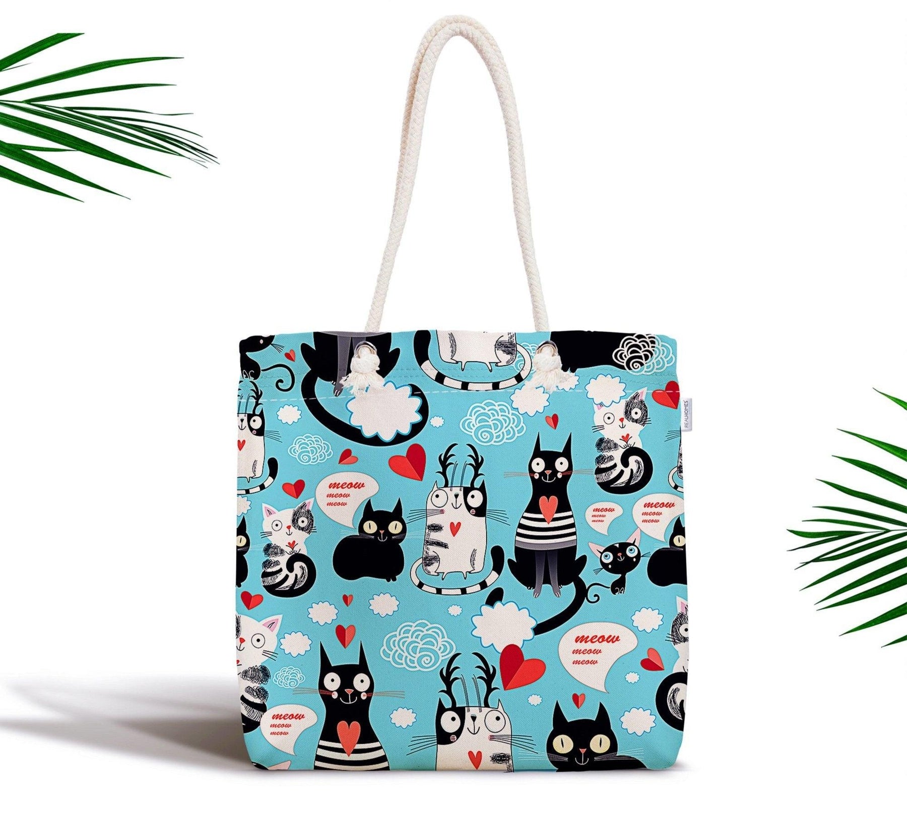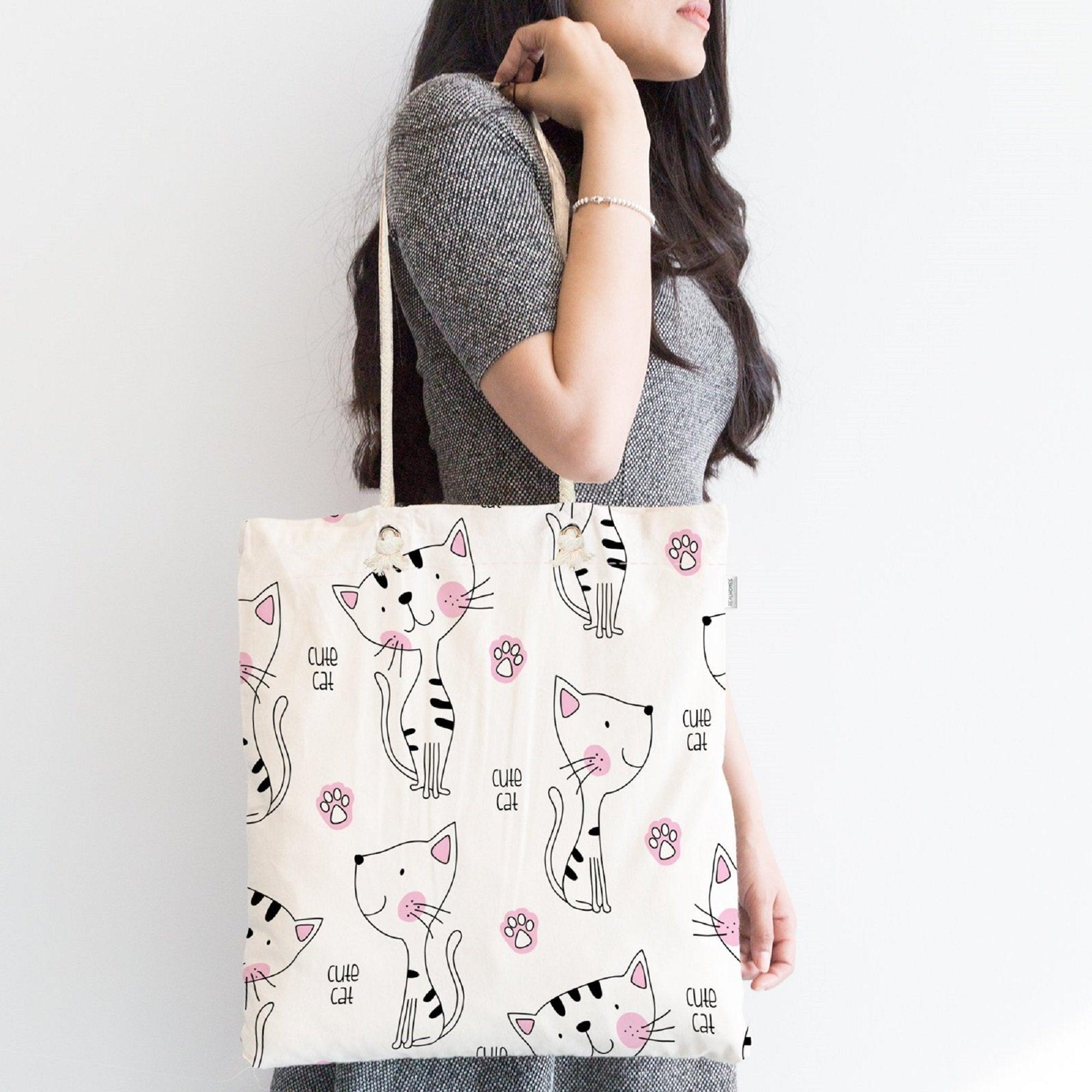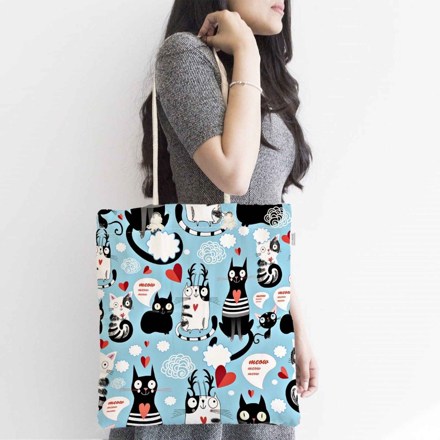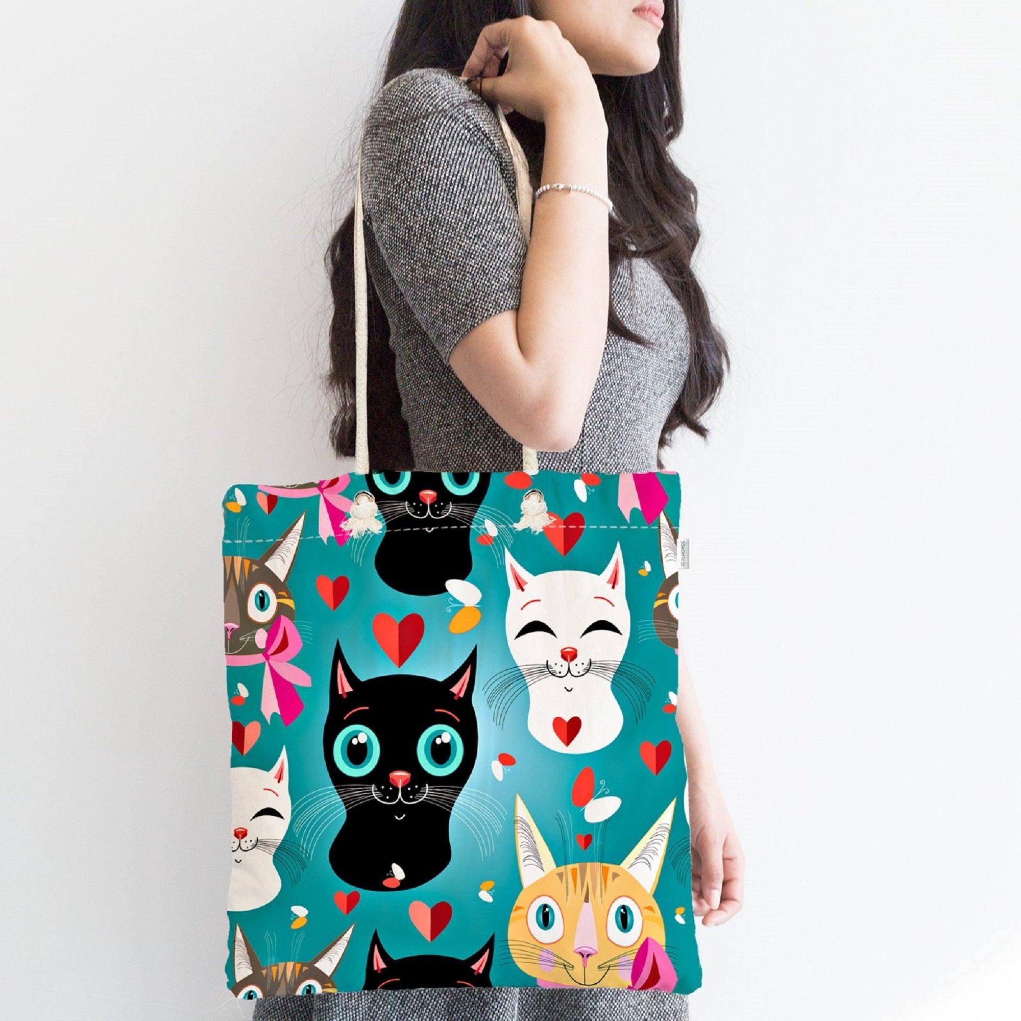 This elegant modern cute cats design digital printed fabric bag;