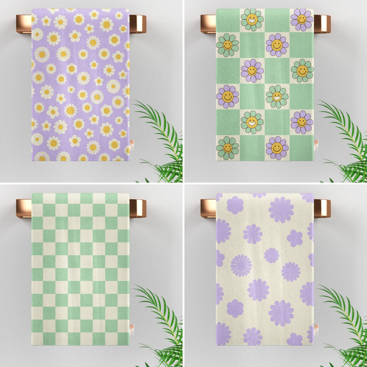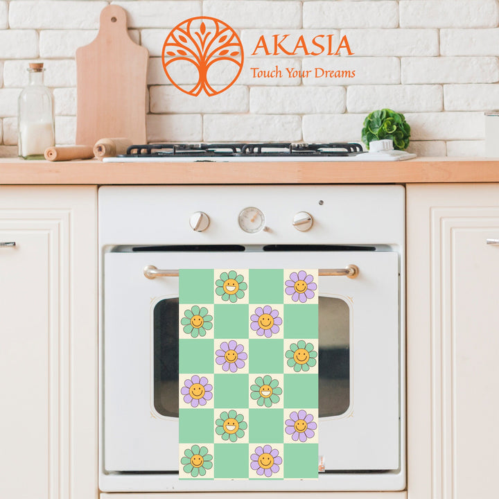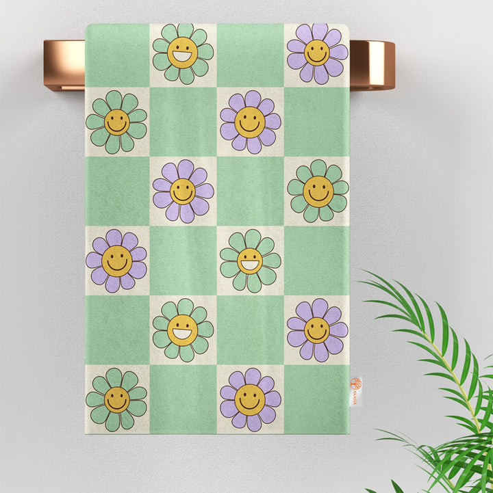 These elegant decorative rectangle kitchen/dish/hand/tea towels with Smiling Daisy, Checkered pattern;