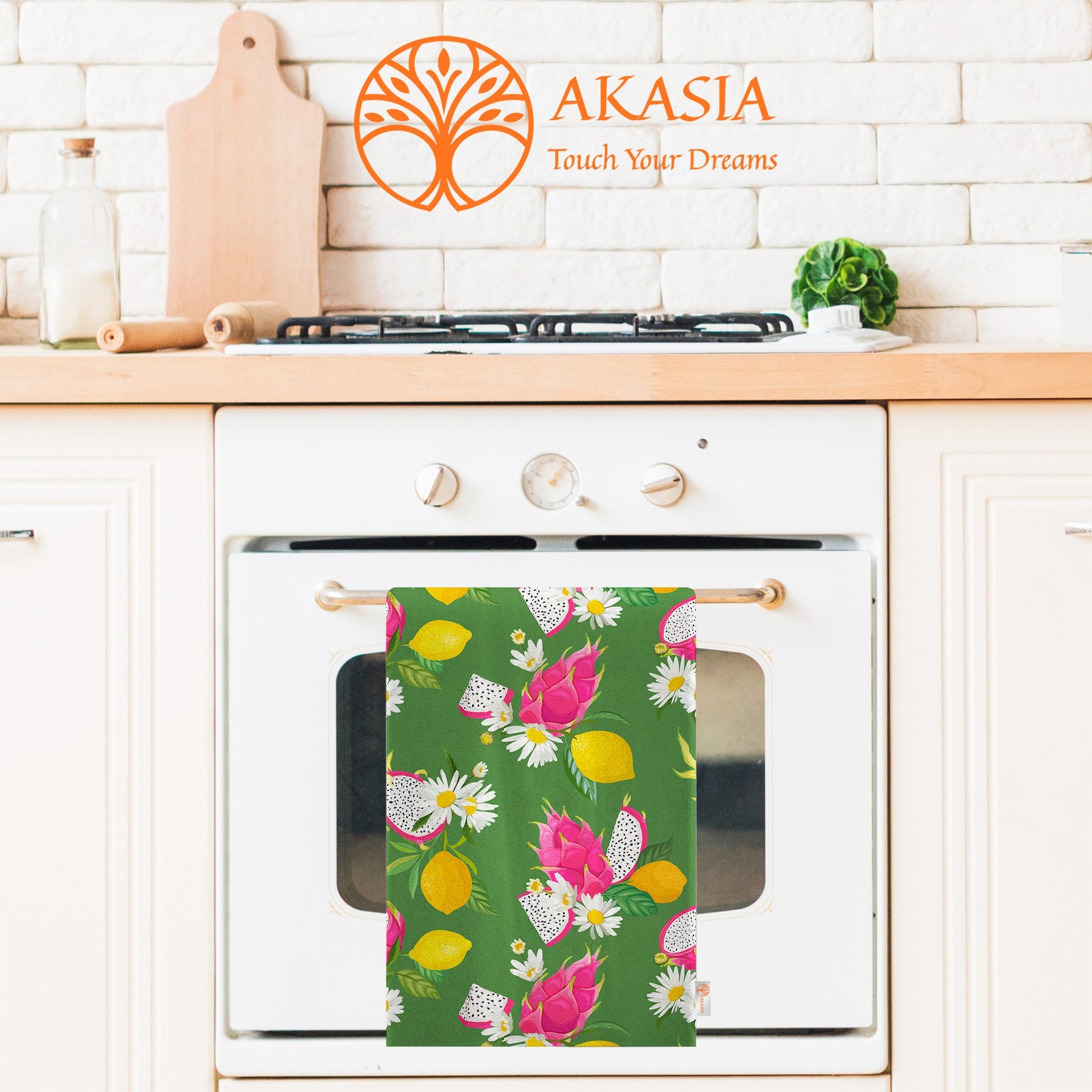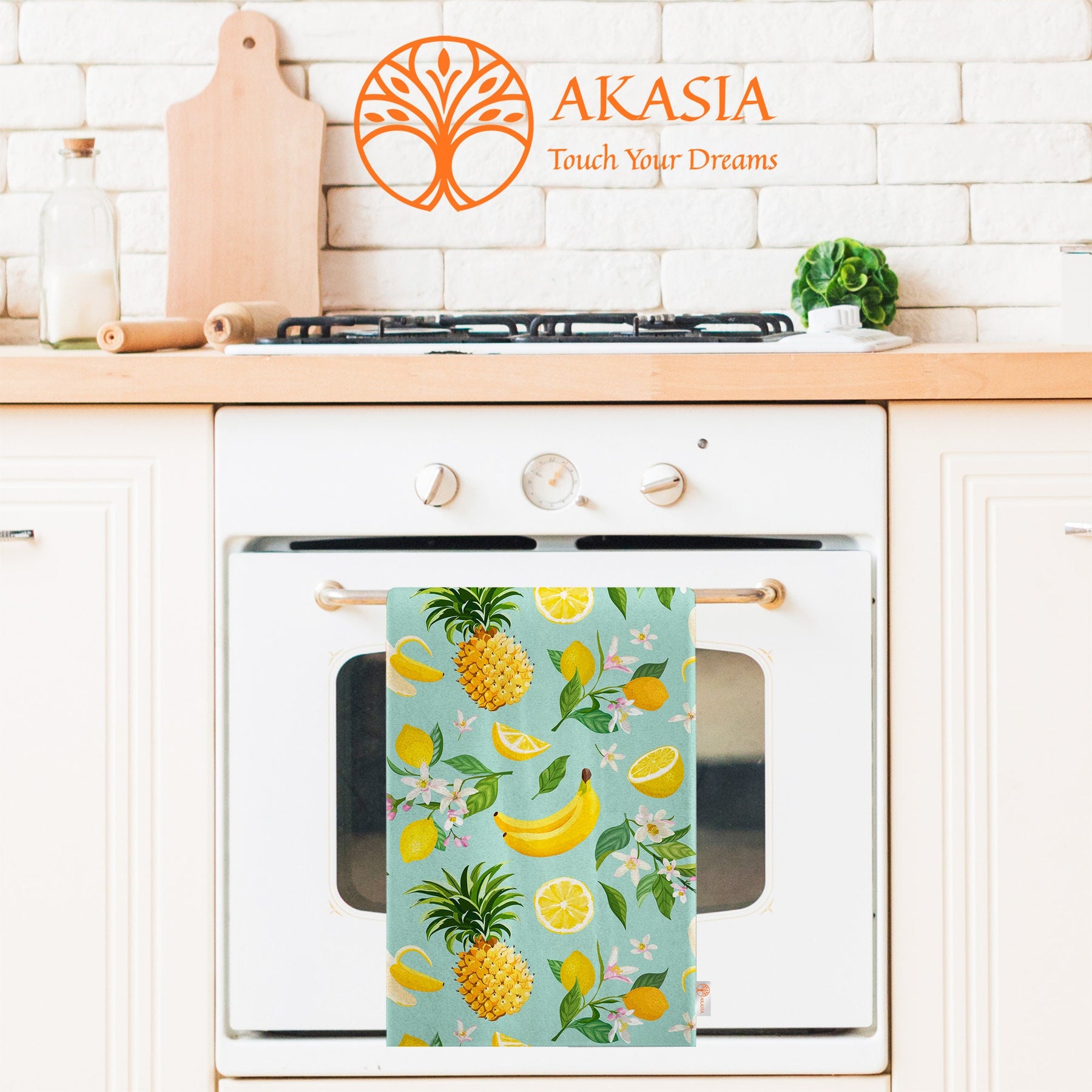 These elegant decorative rectangle kitchen/dish/hand/tea towels with Dragon Fruit, Apple, Banana, Pineapple prints;