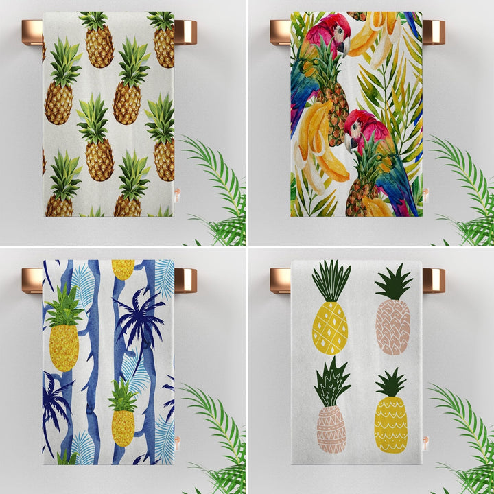 These elegant decorative rectangle kitchen/dish/hand/tea towels with Pineapple and Parrot prints;