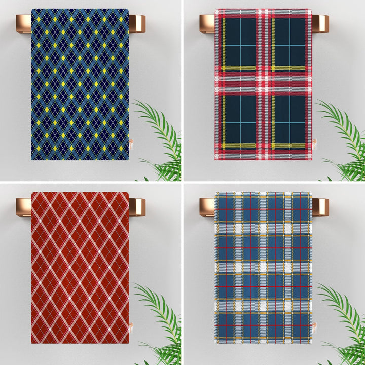 These elegant decorative rectangle kitchen/dish/hand/tea towels with plaid/checkered/geometric/abstract design;