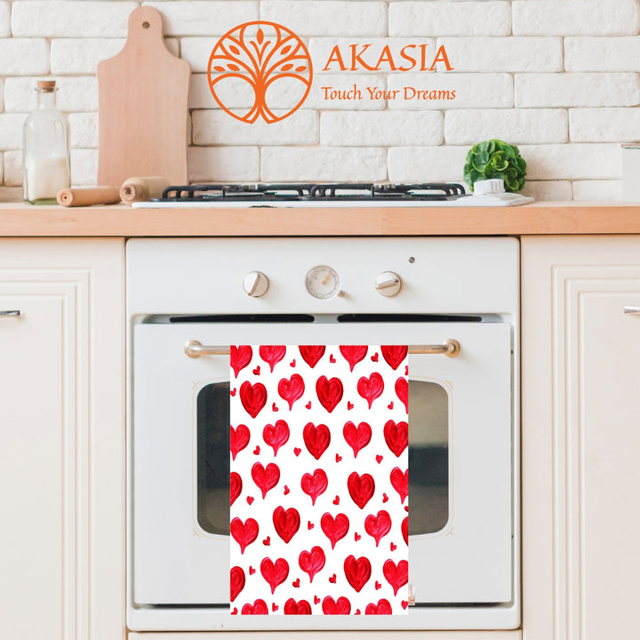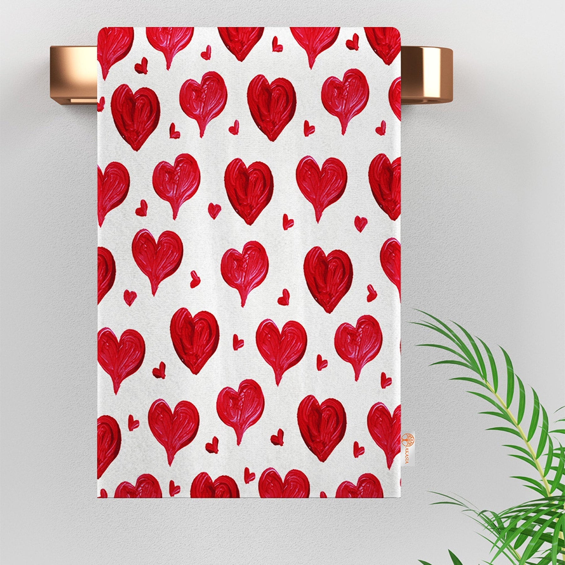 Valentine Tea Towel|Love Dish Cloth|Heart Print Towel|Heart Hand Towel|Romantic Valentine's Day Gift|Soft Dishcloth|Love Kitchen Towel
