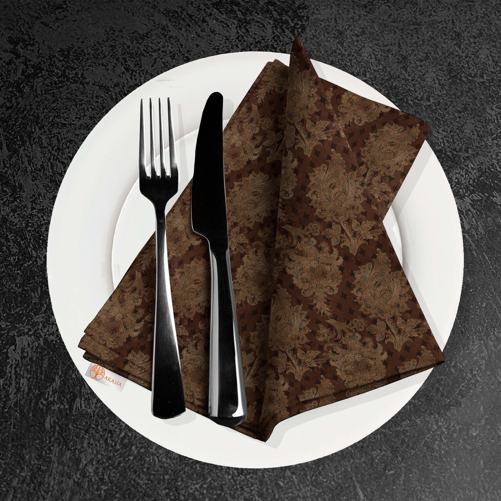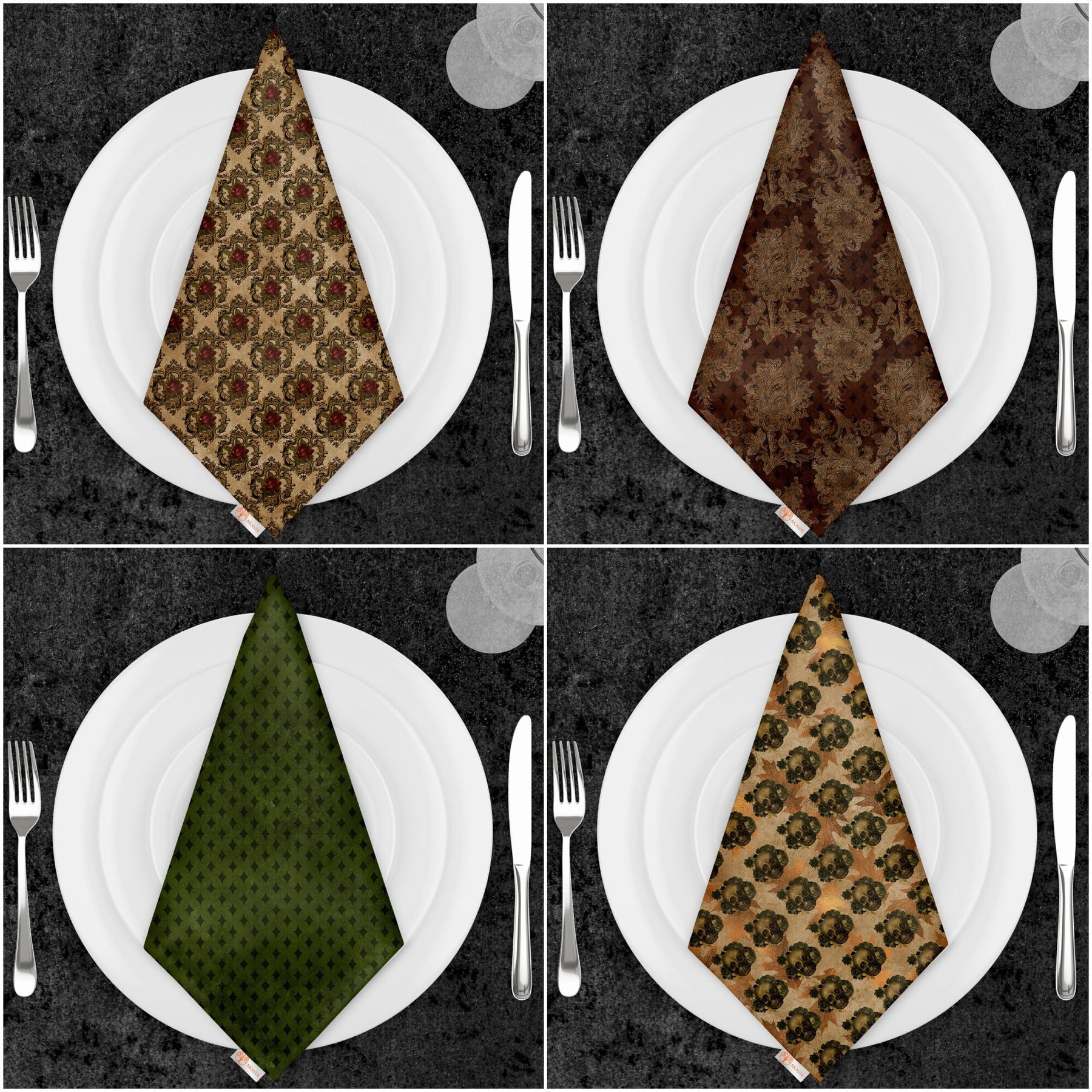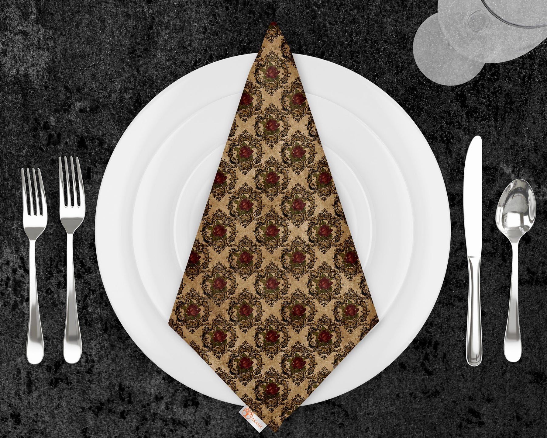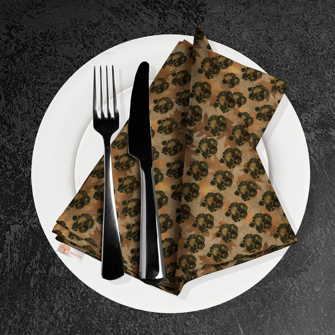 These high quality napkins with ethnic design with skull, flowers and leaf prints;