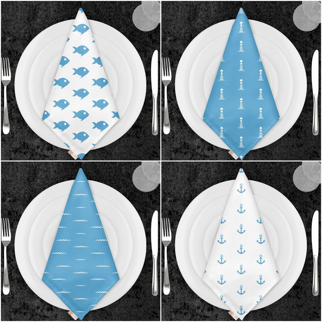 These high quality napkins with Fish, Lighthouse, Anchor, Sea Wave prints;
