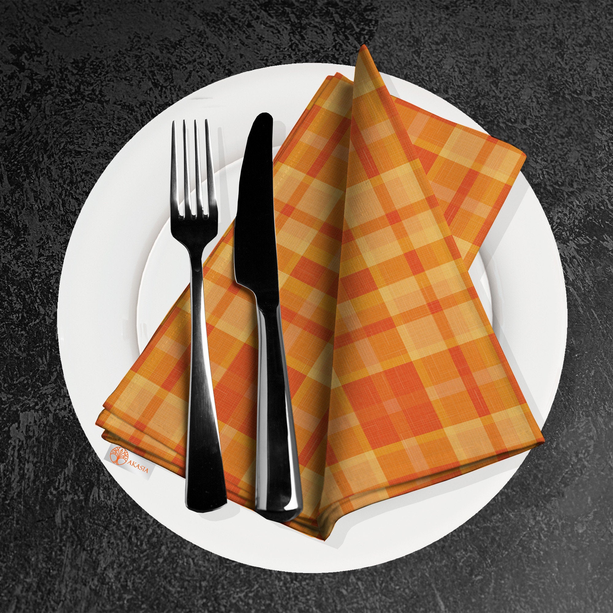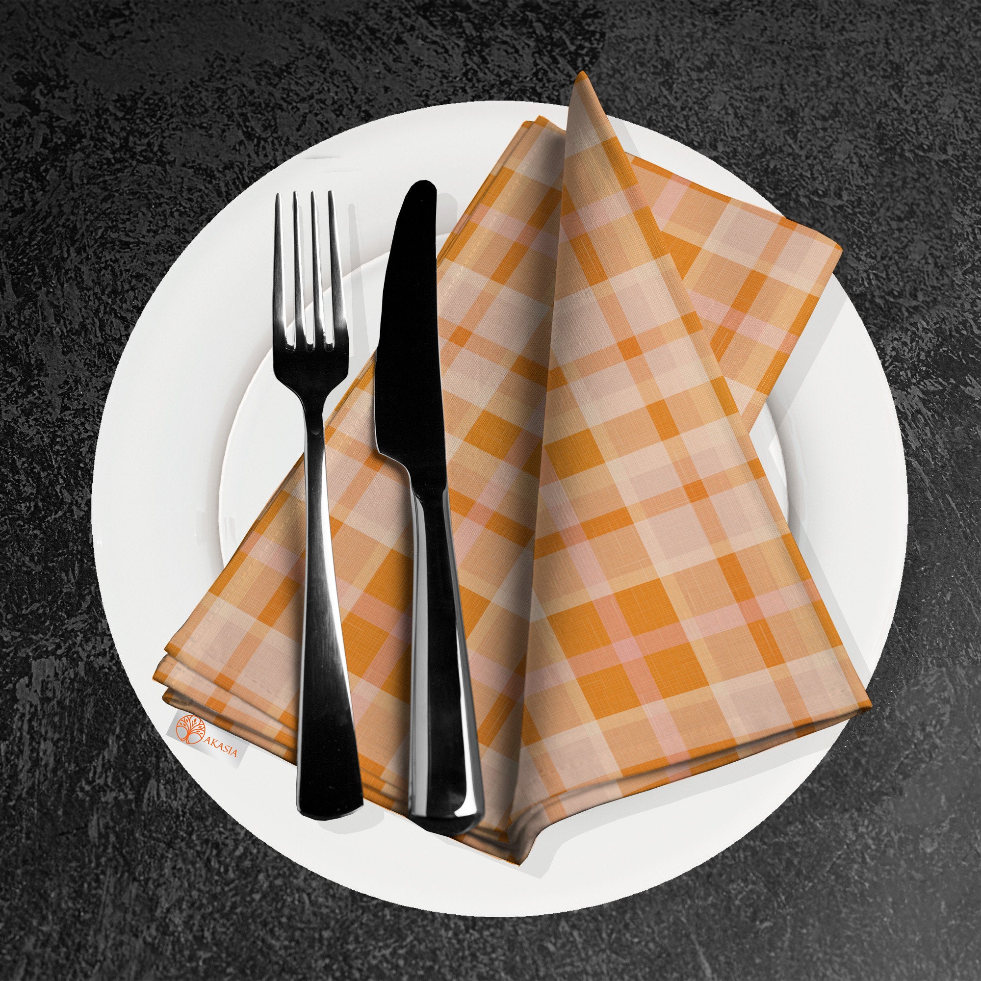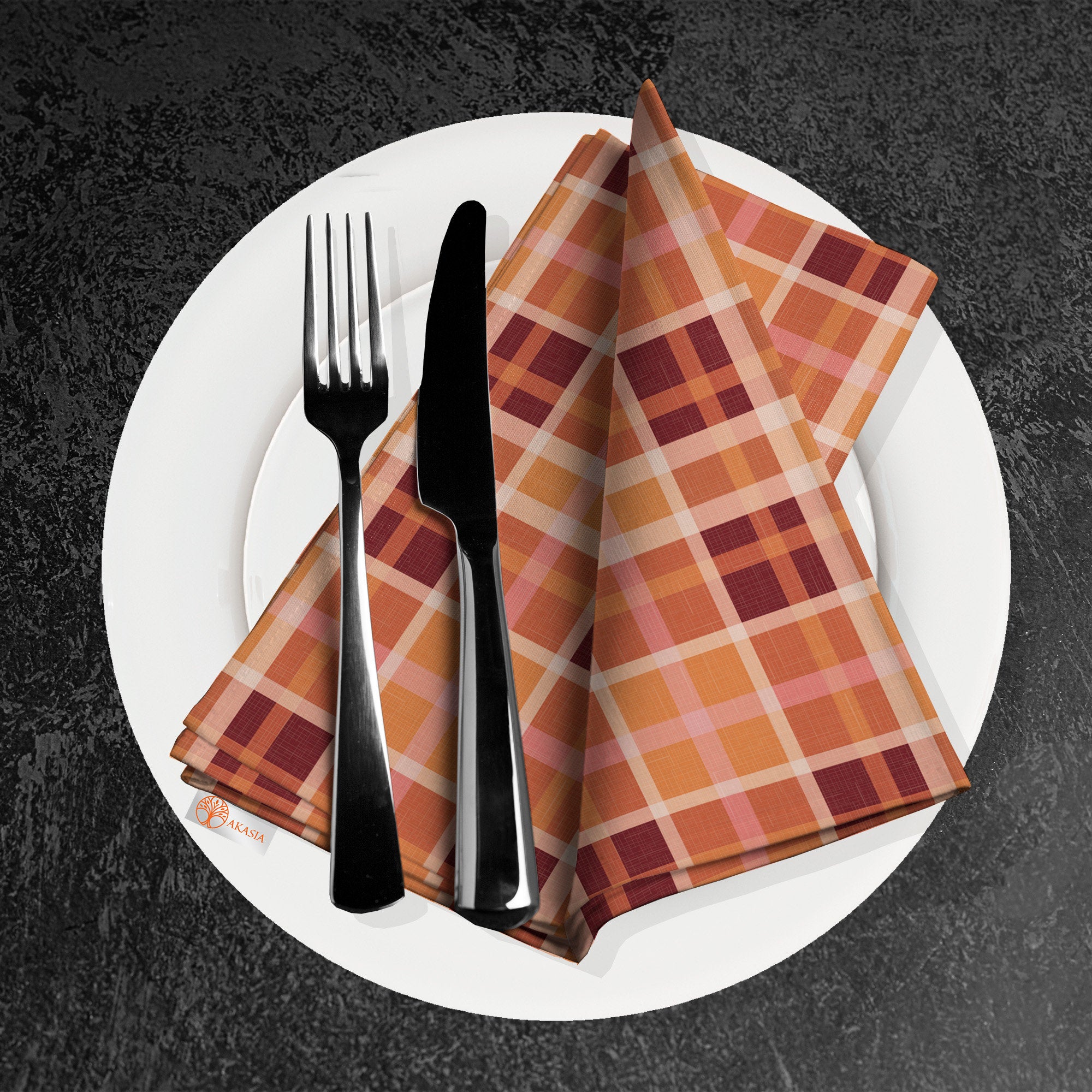Orange Plaid Fabric Napkin