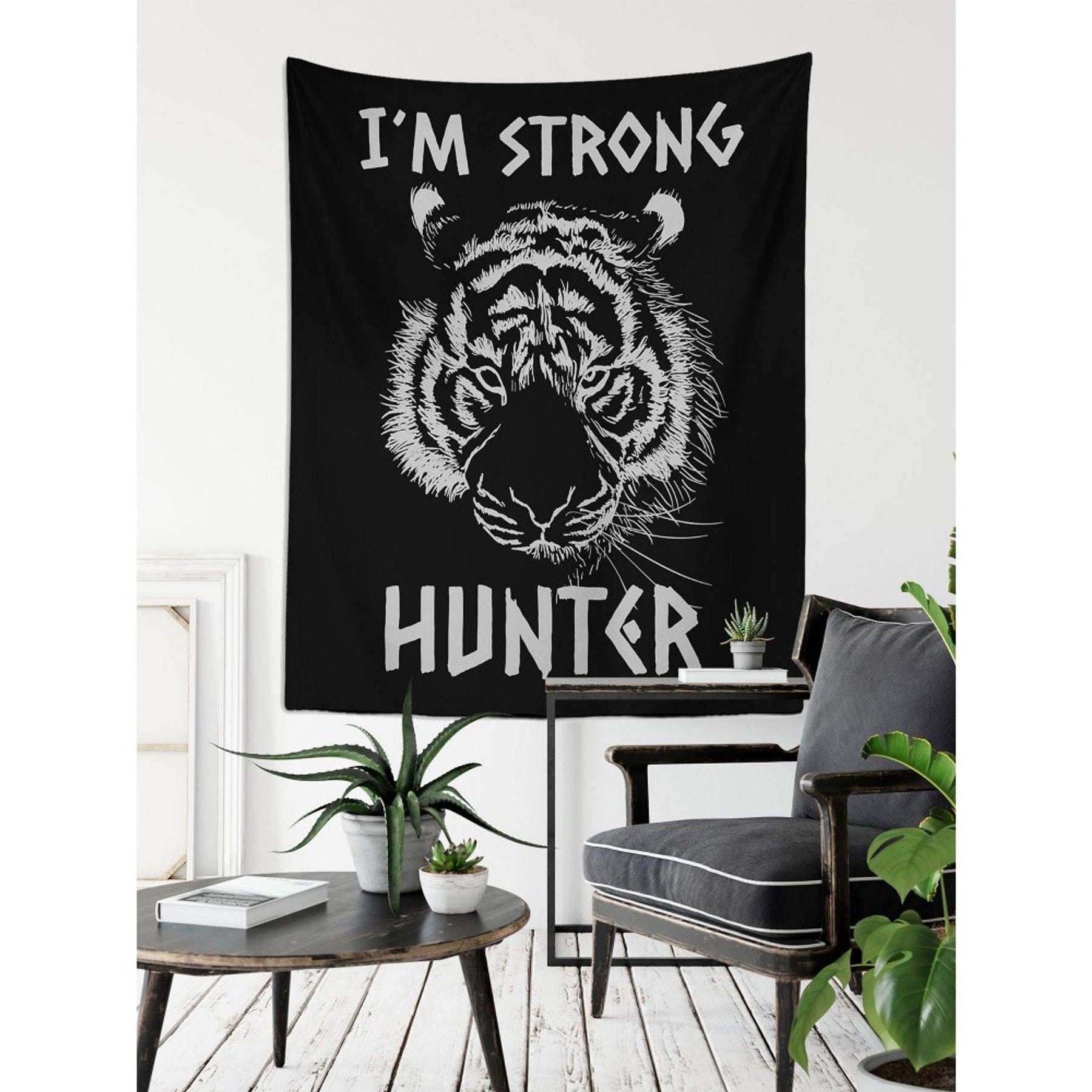 This elegant boho style abstract minimalist tiger with inspirational saying "I'm Strong Hunter" fabric wall hanging decor reflect your life perspective and;