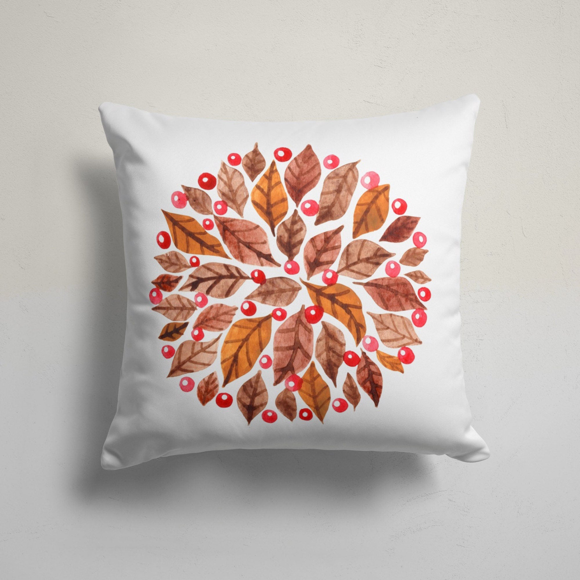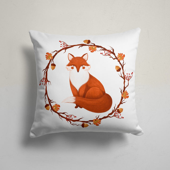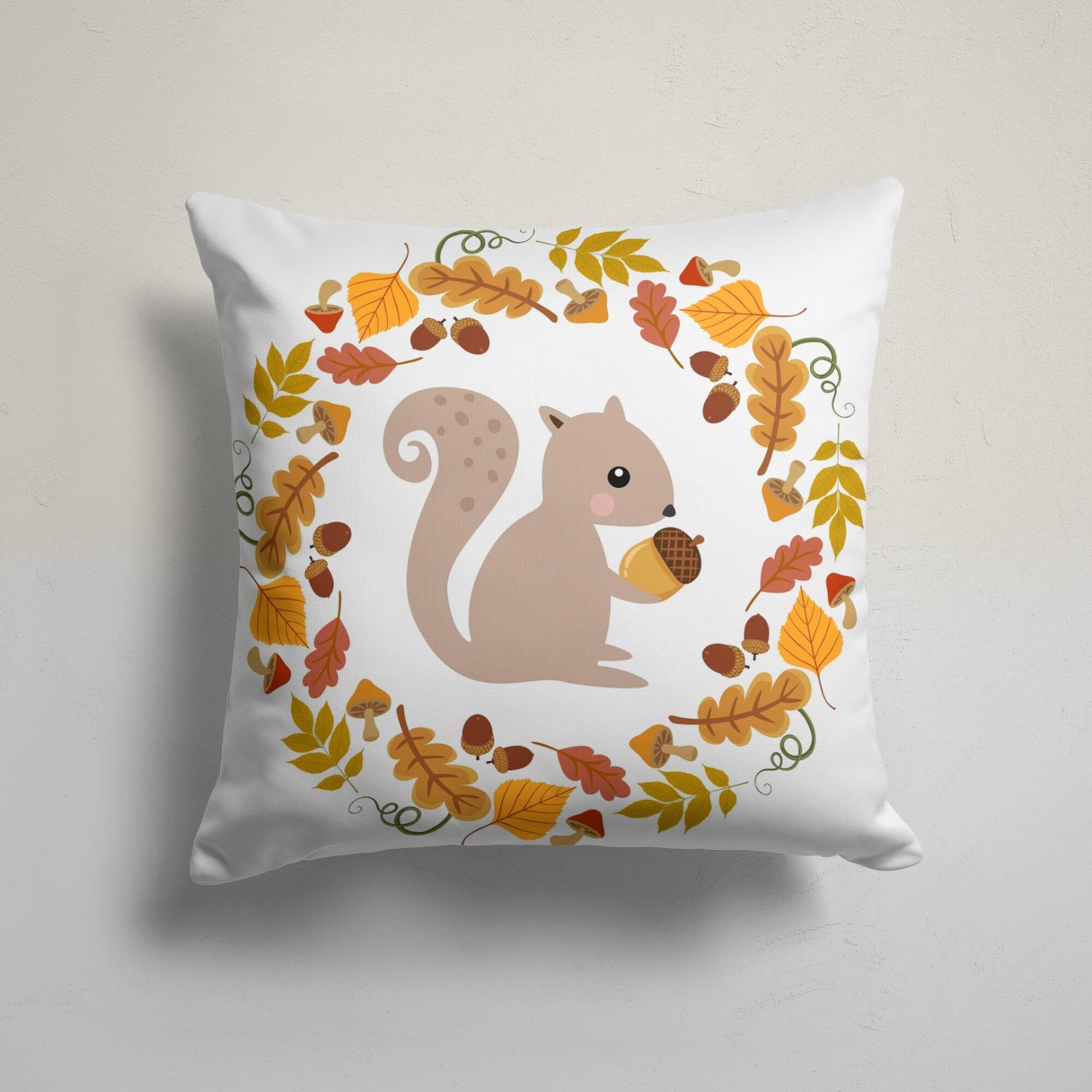 Fall Pillow Cover|Orange Green Leaf Drawing Throw Pillowtop|Fox Cushion Case|Squirrel and Acorn Autumn Home Decor|Farmhouse Cushion Cover