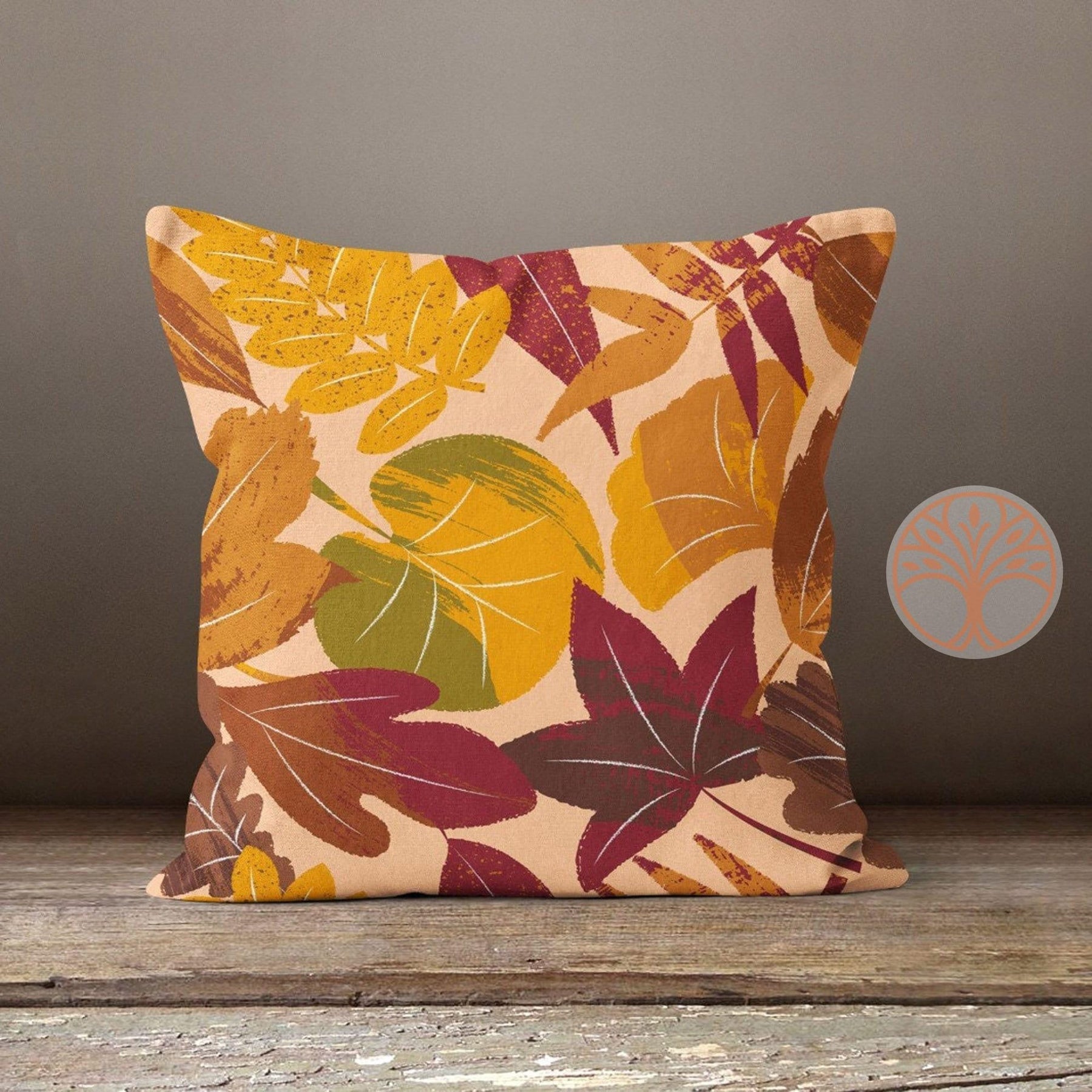 These autumn elegant square decorative rustic farmhouse style throw cushion covers with dry leaves;