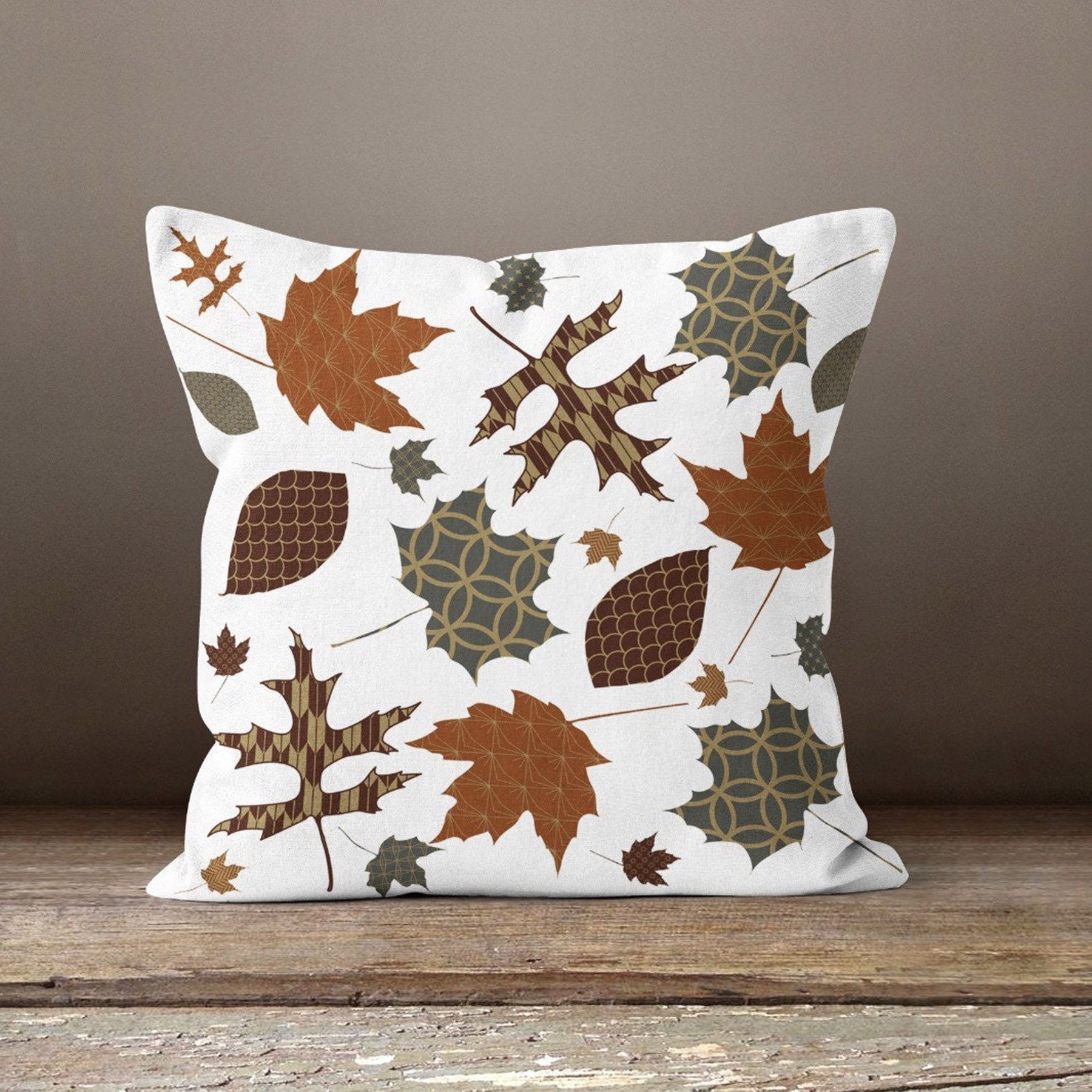 These autumn square decorative rustic farmhouse style throw cushion covers with colorful fall leaves;