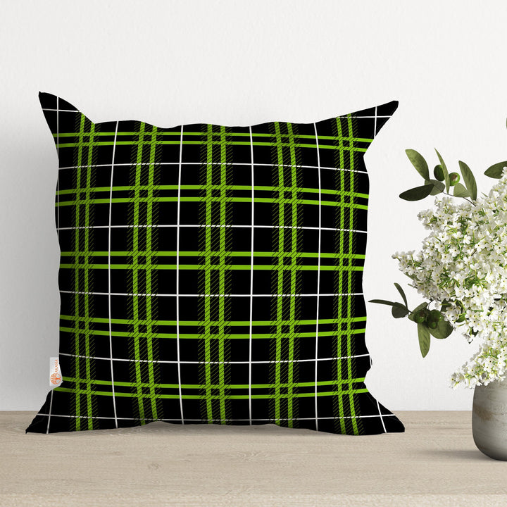 These elegant square decorative farmhouse throw pillow covers with Carved Pumpkin and plaid design;