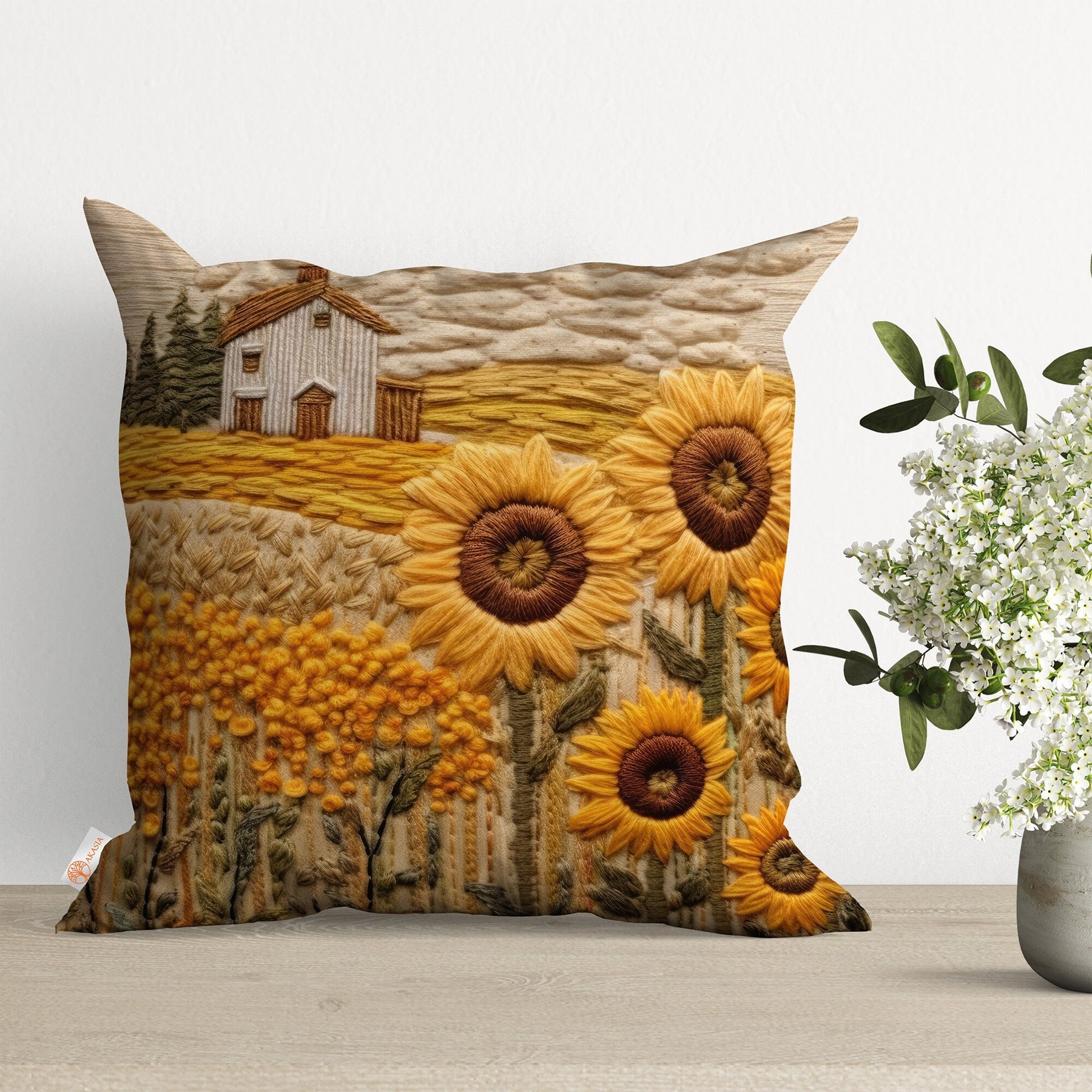 ⚓ These elegant square decorative throw pillow covers with Sunflower/rustic landscape prints;