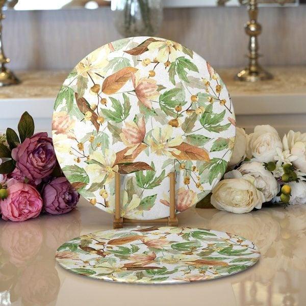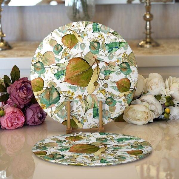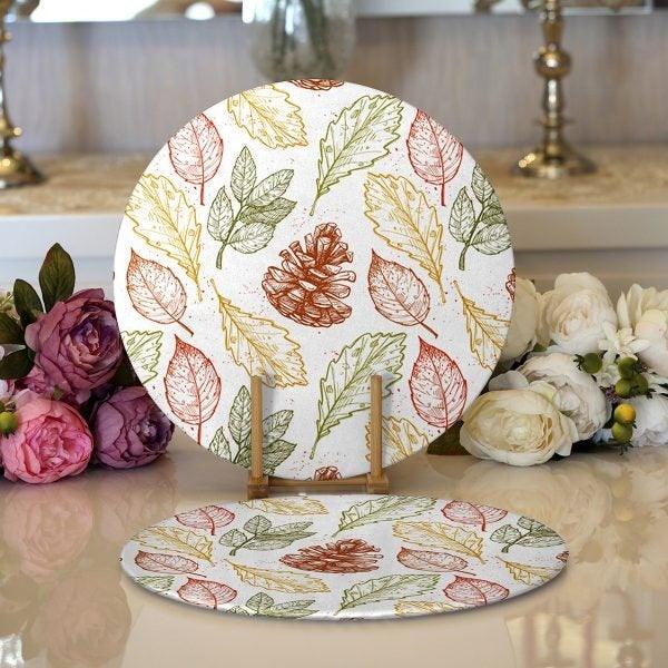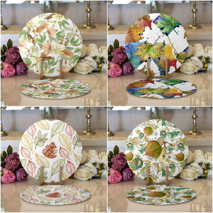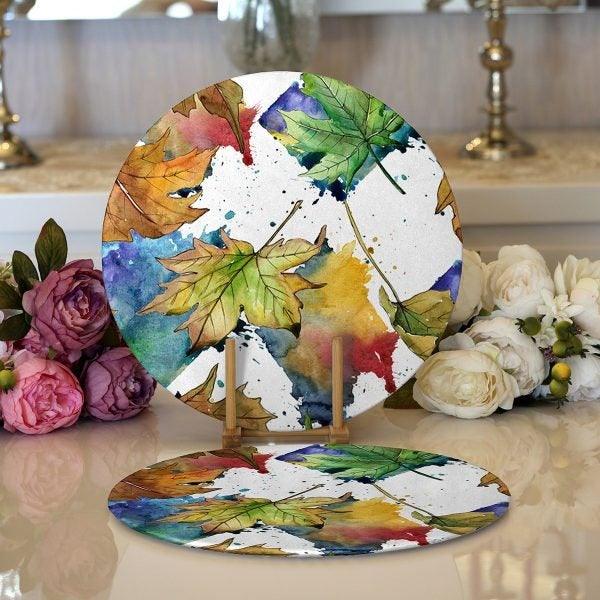 Fall Trend Placemat|Set of 2 Leaves Supla Table Mat|Dry Leaves Round American Service Dining Underplate|Farmhouse Style Autumn Coasters