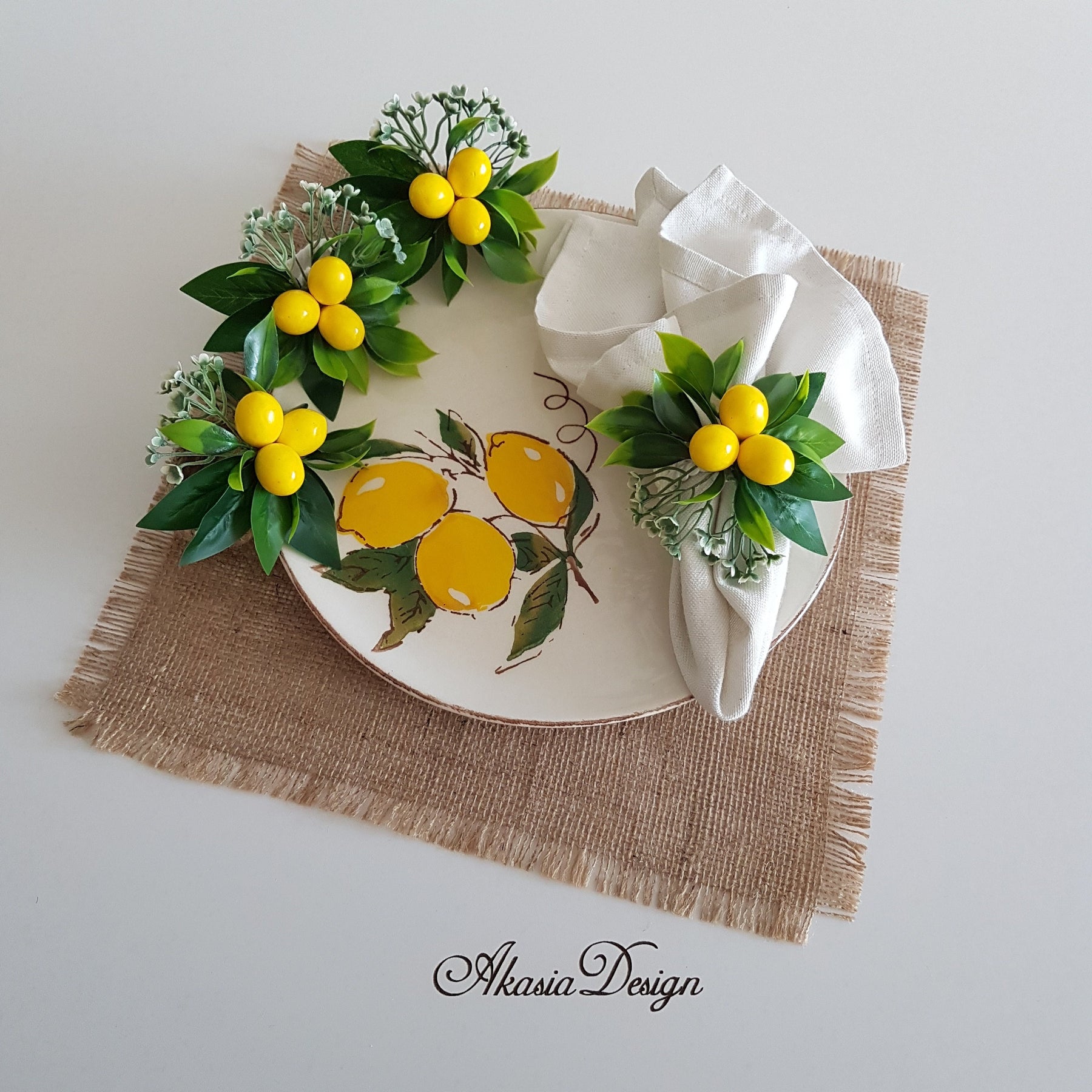 This lovely napkin ring can be used as/at: Lemon Napkin Ring, Summer Decor, Wedding Favor, Farmhouse Table Decor, Napkin Holder, Natural Decor, Floral Napkin Rings, Summer Wedding table decor, Table Centerpiece, Housewarming gift, Rustic Kitchen Table Top, Floral Fresh Citrus Napkin Holder