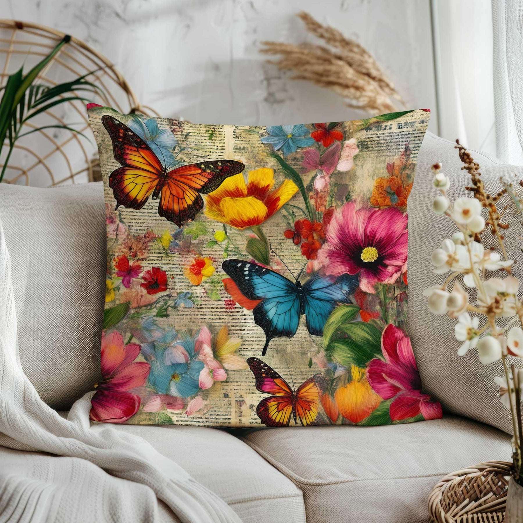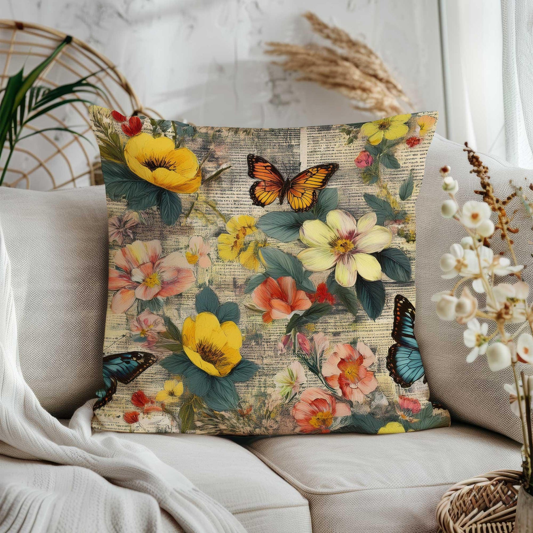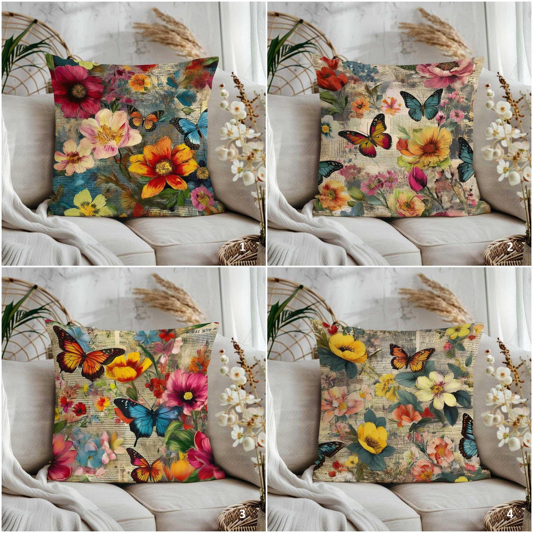 Blooming Florals Porch Pillowcase|Vibrant Butterflies Home Decor Gift|Boho Cushion Case|Farmhouse Style Cushion Cover|Summer Throw Pillowtop